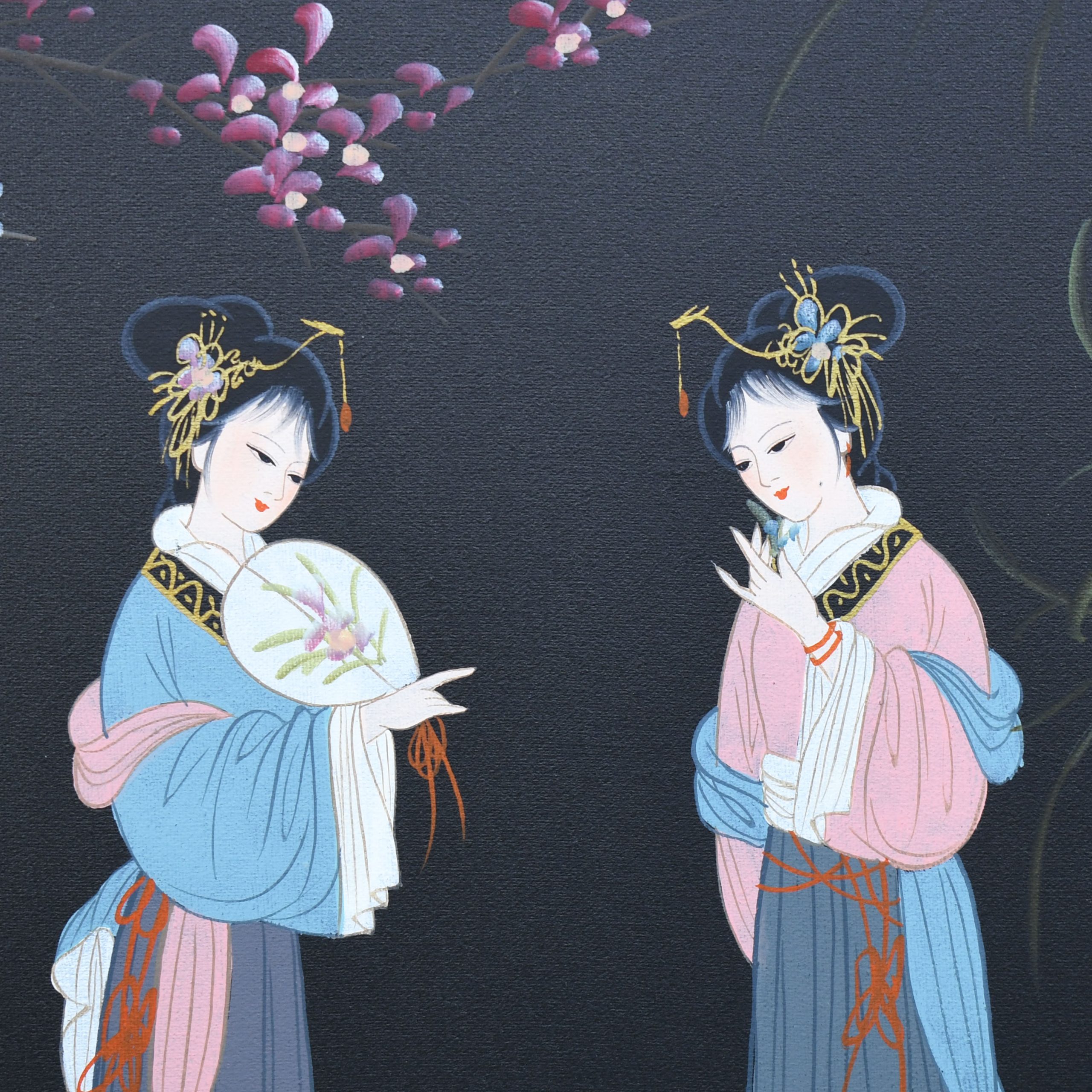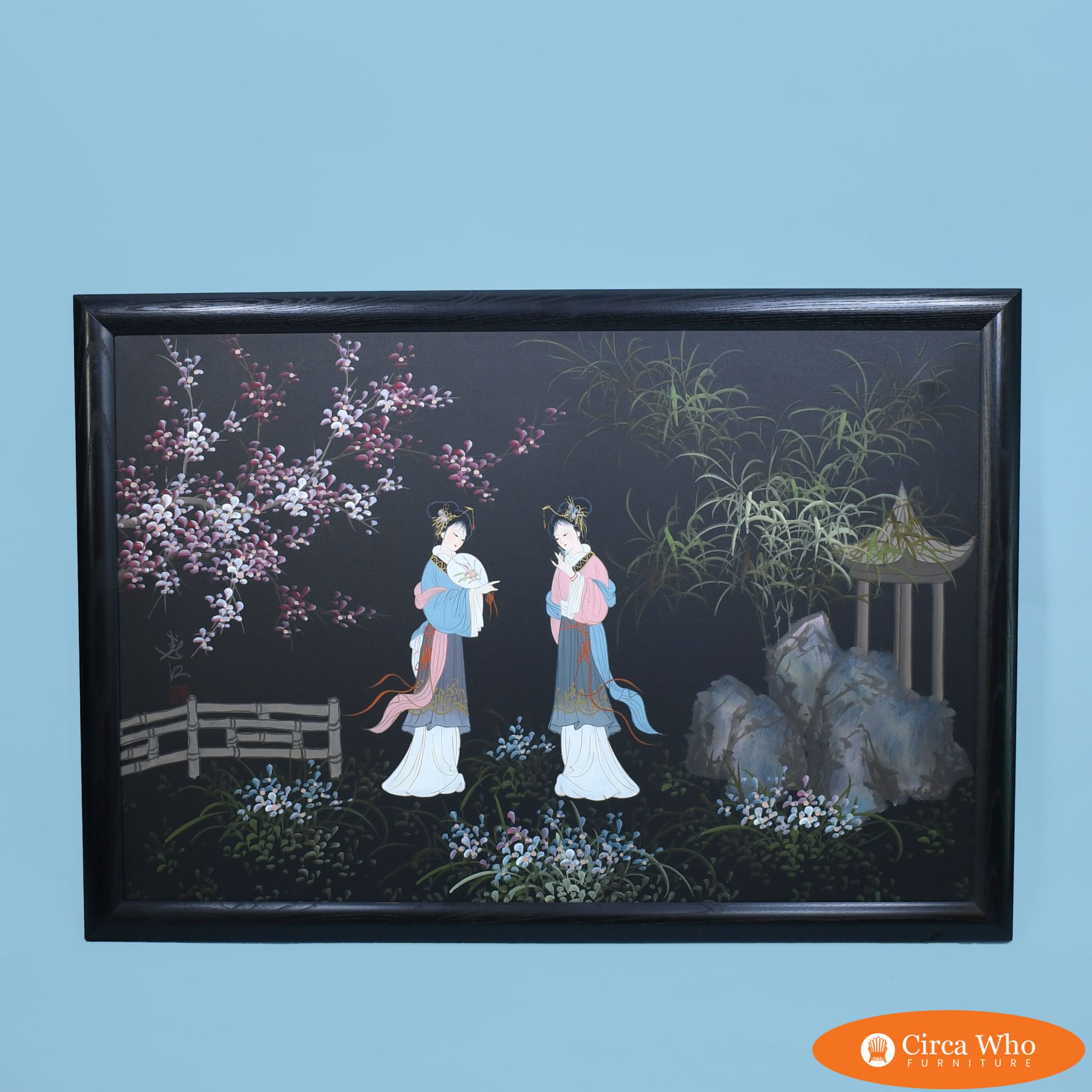 2 Japanese Geisha in Evening Art in nice as found VINTAGE condition. There are minor scuffs, scrapes and wear to the as found finish. (see photos)
