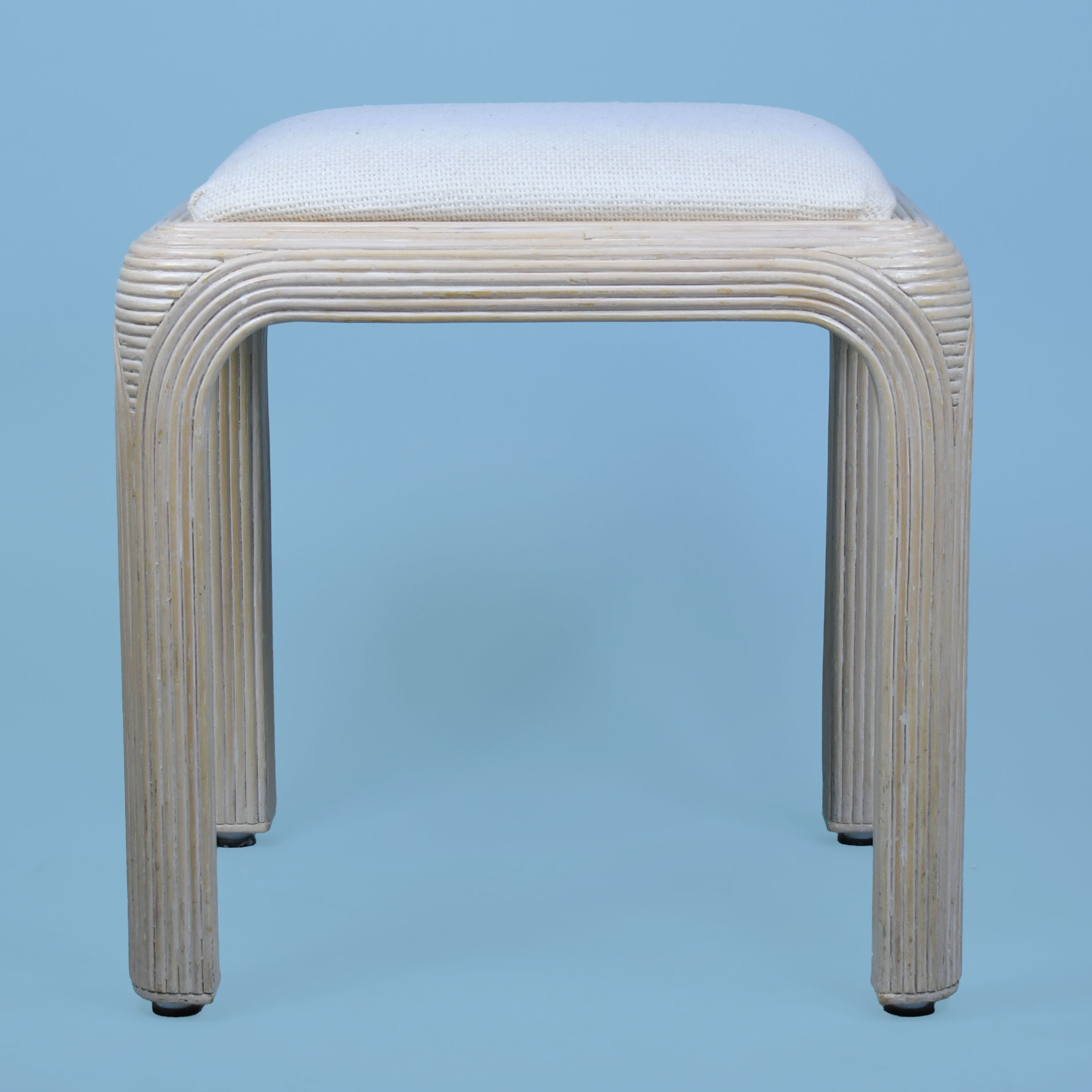 Blonde Pencil Reed Stool in nice as found vintage condition. There are minor scuffs, scrapes and wear to the original finish. As found upholstery. (see photos)