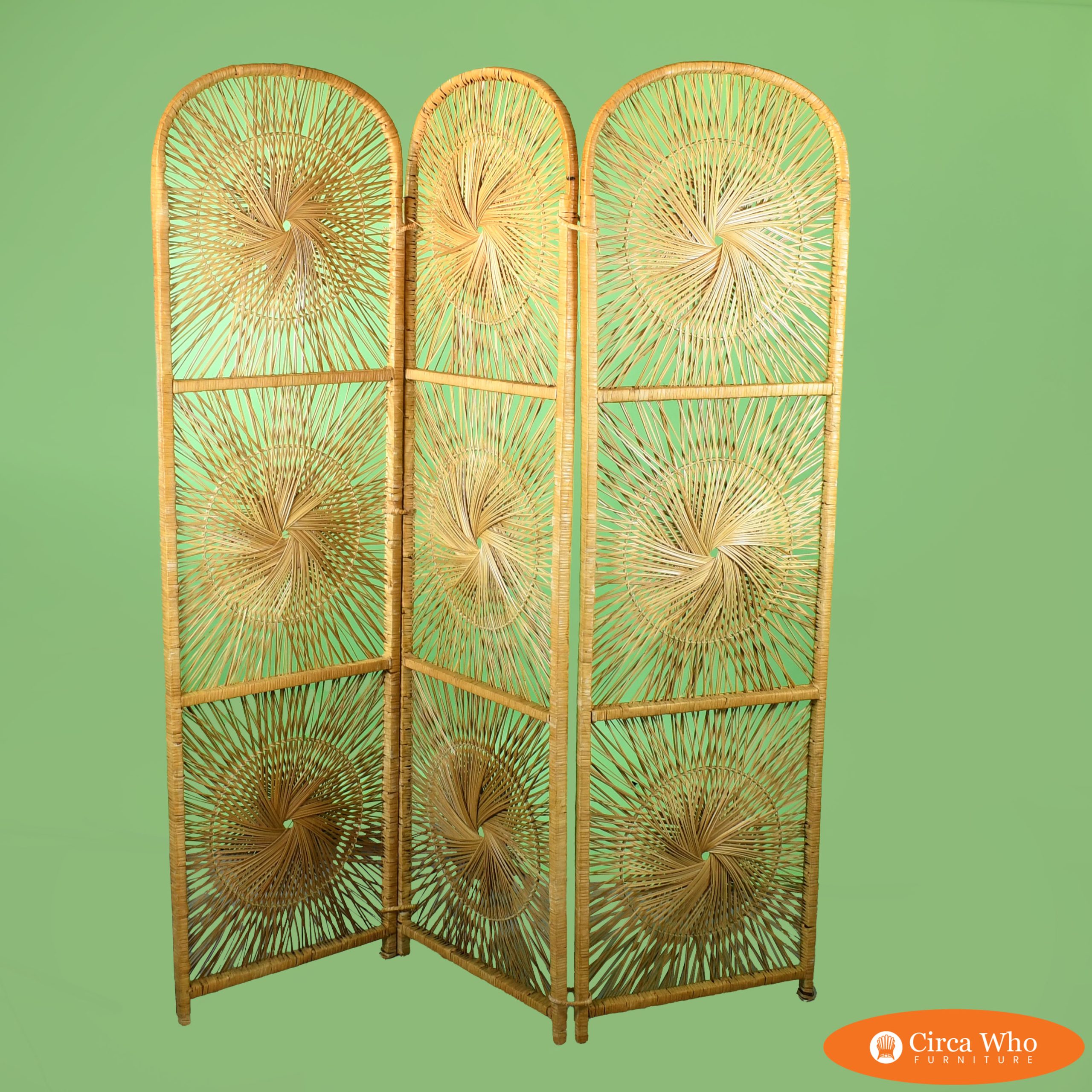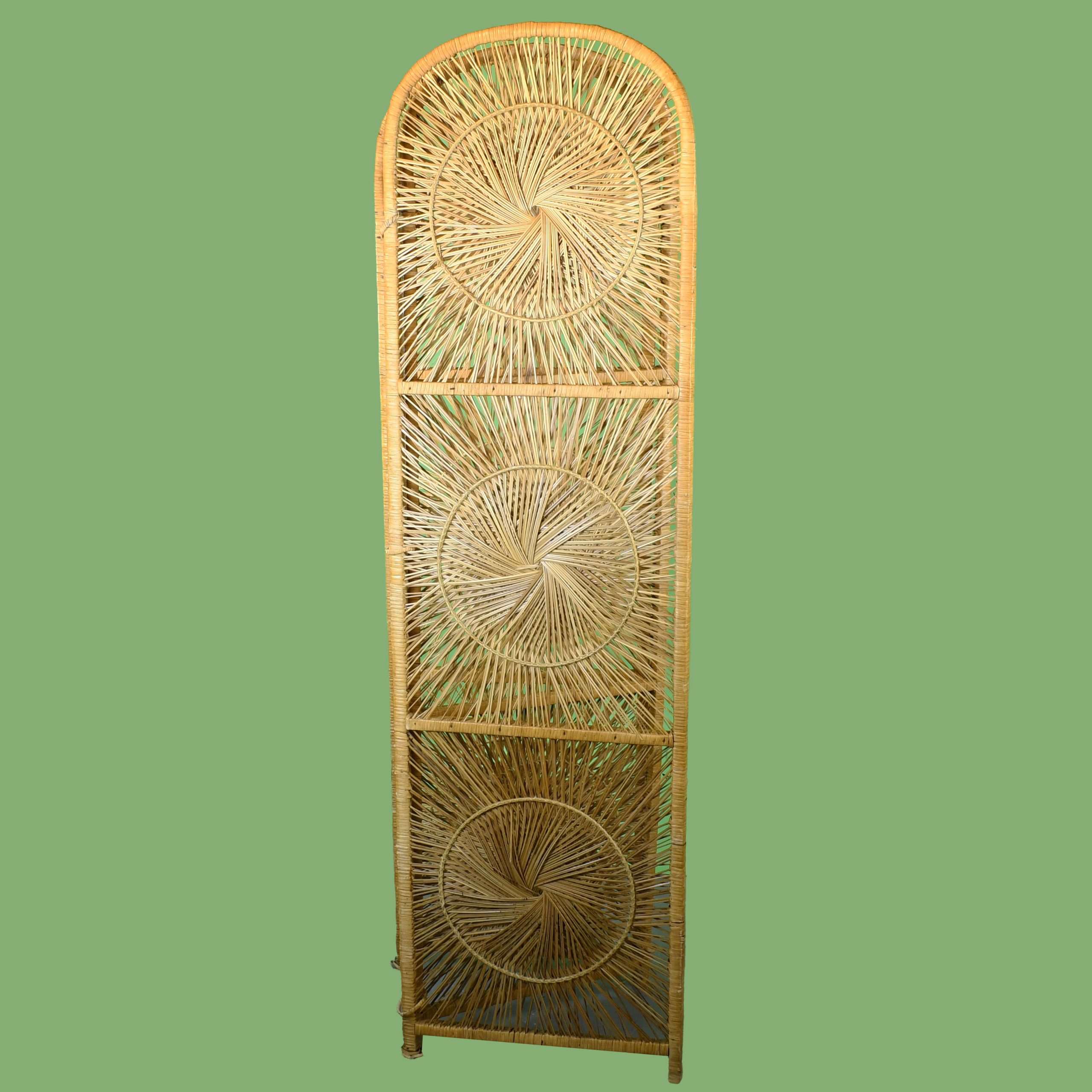 Buri Rattan 3 Panel Oval Screen in nice as found VINTAGE condition. There are minor scuffs, scrapes and wear to the as found finish. (see photos)