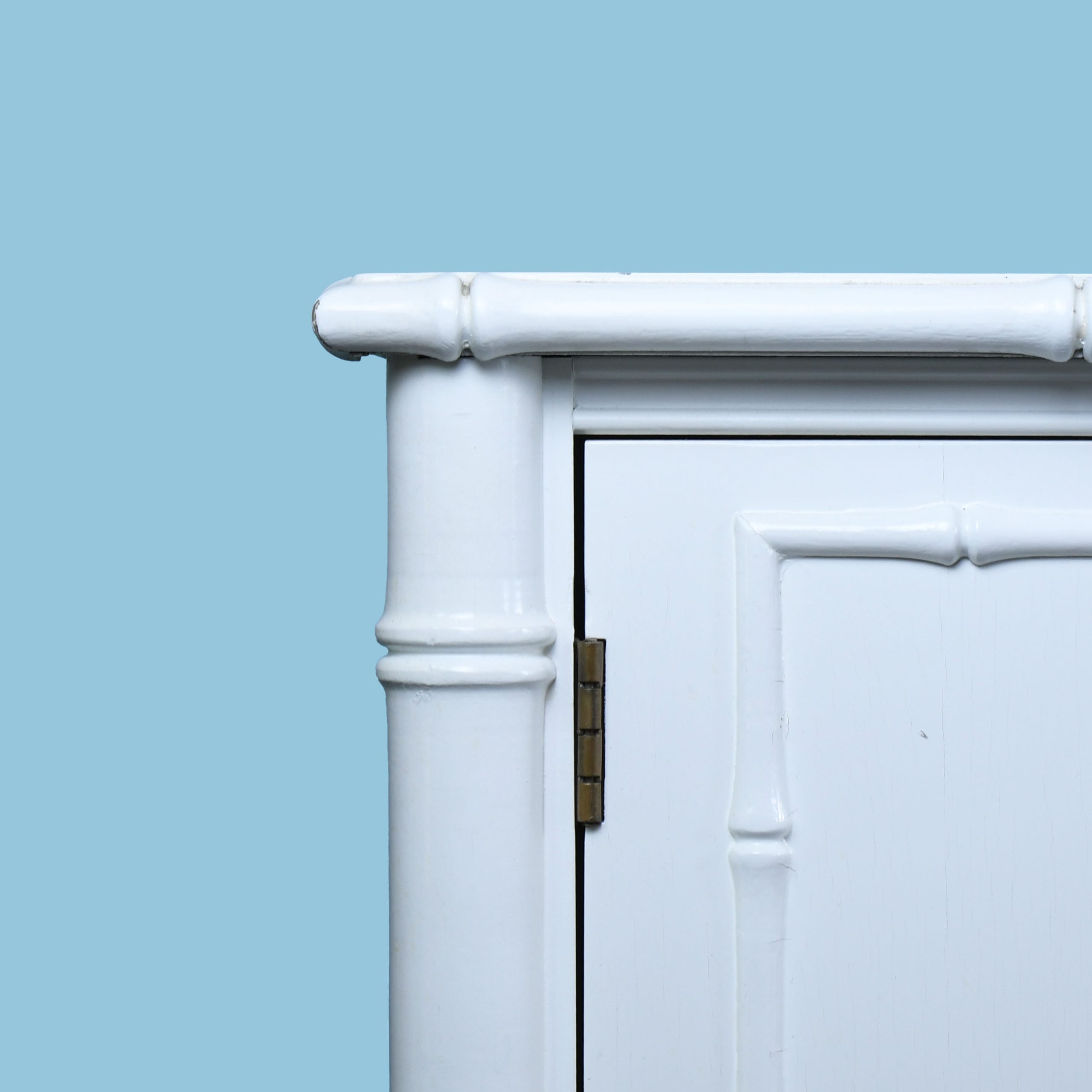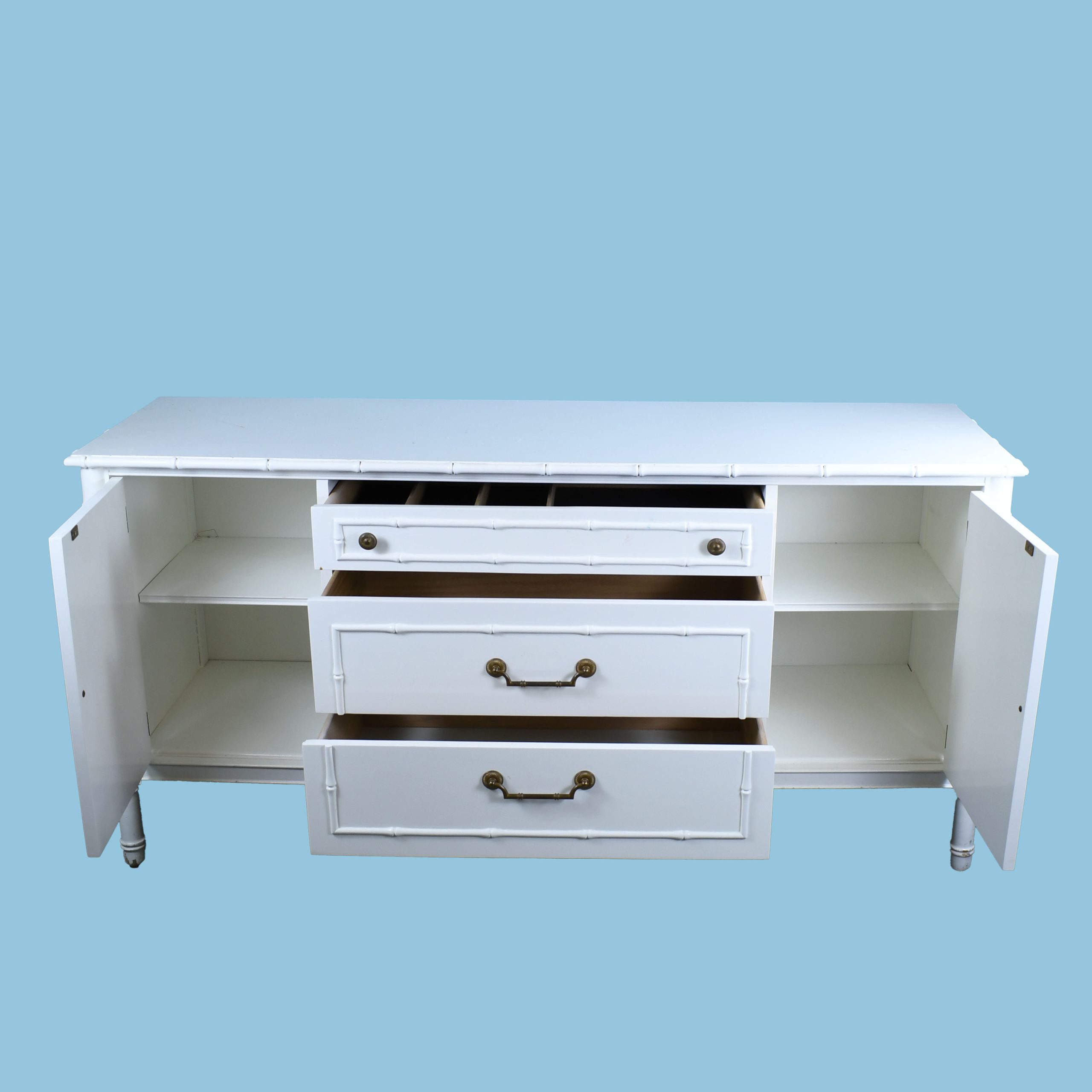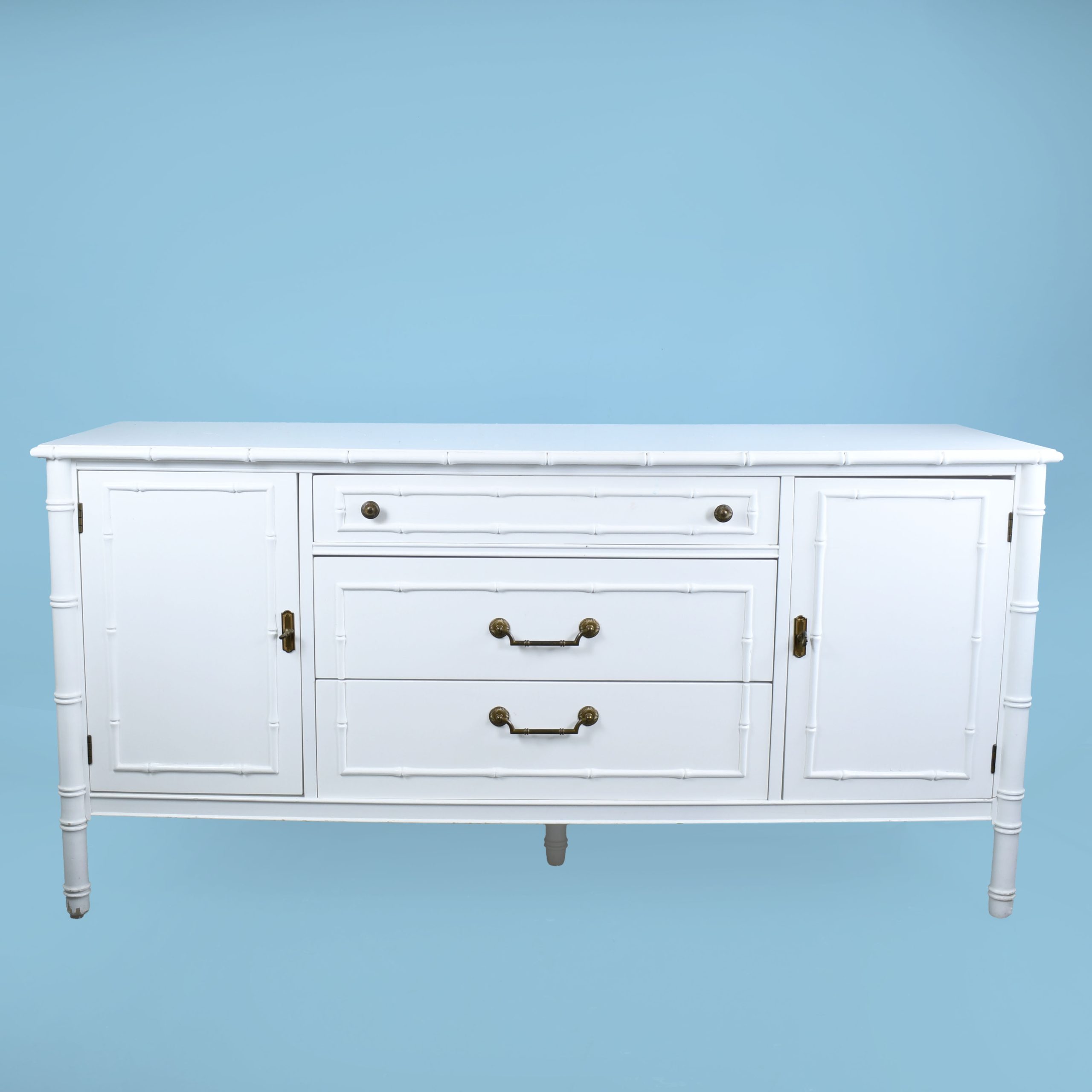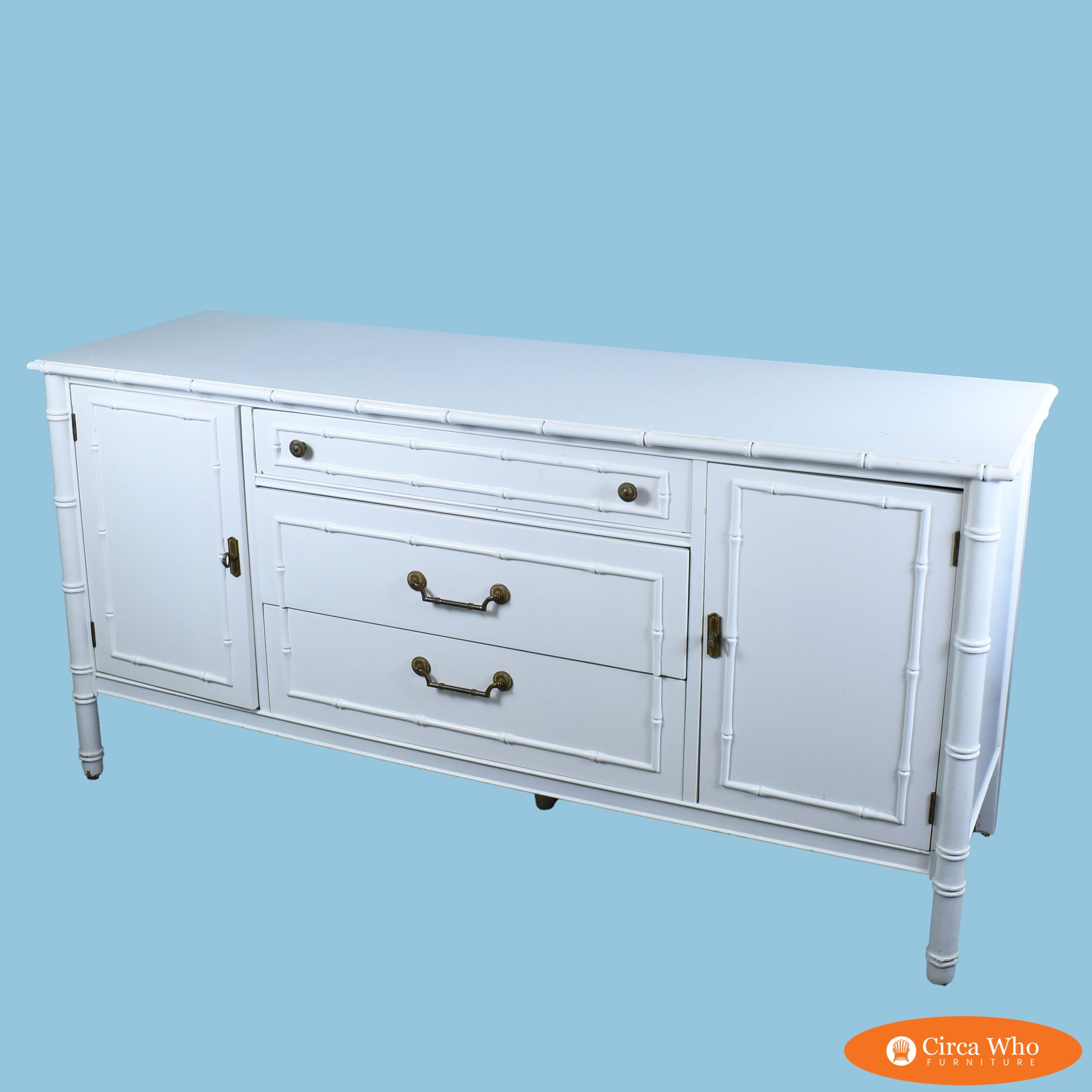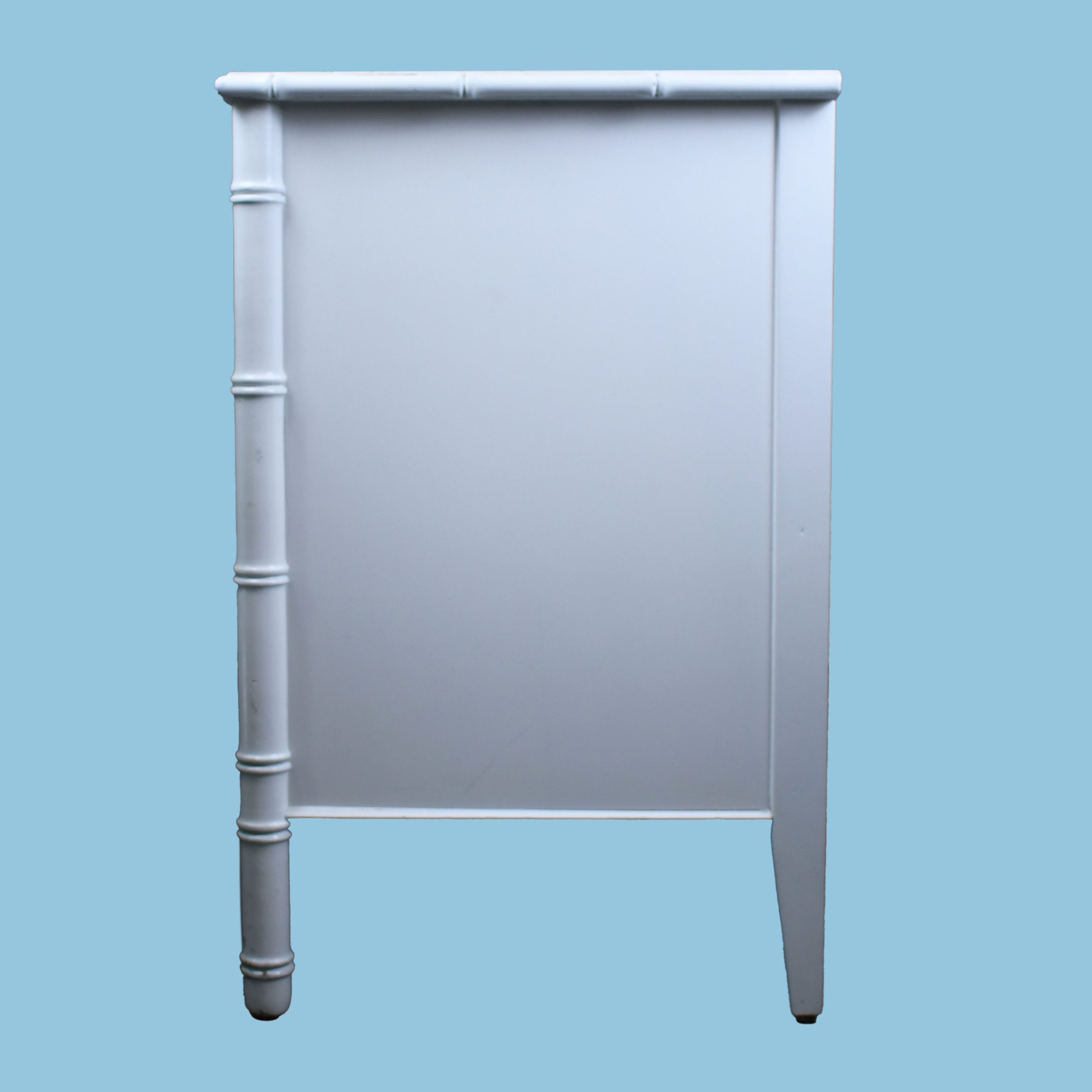 Faux Bamboo White Dresser in nice as found vintage condition. There are minor scuffs, scrapes and wear to the original finish. (see photos)