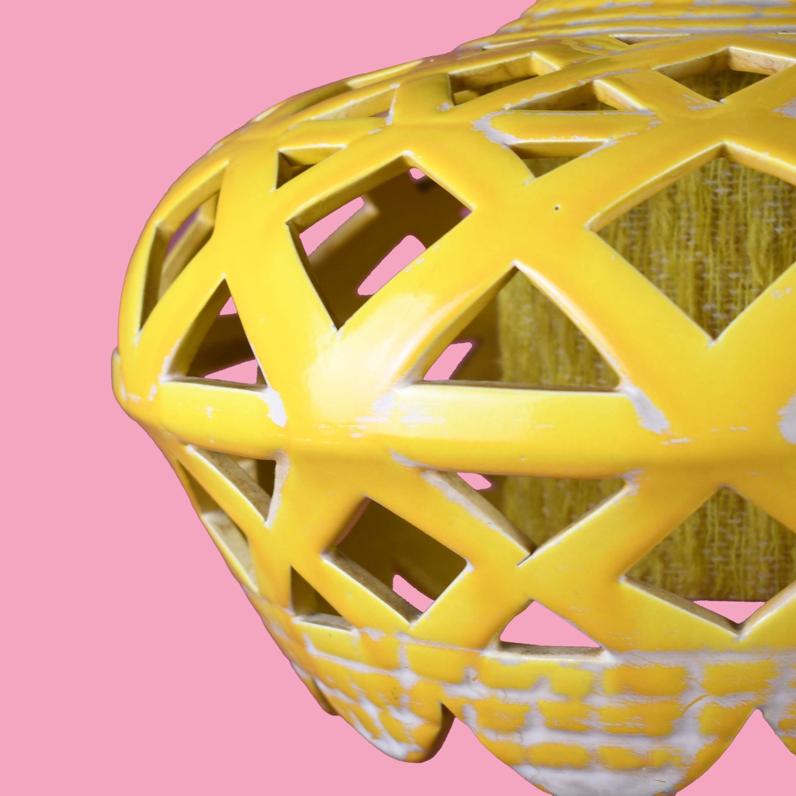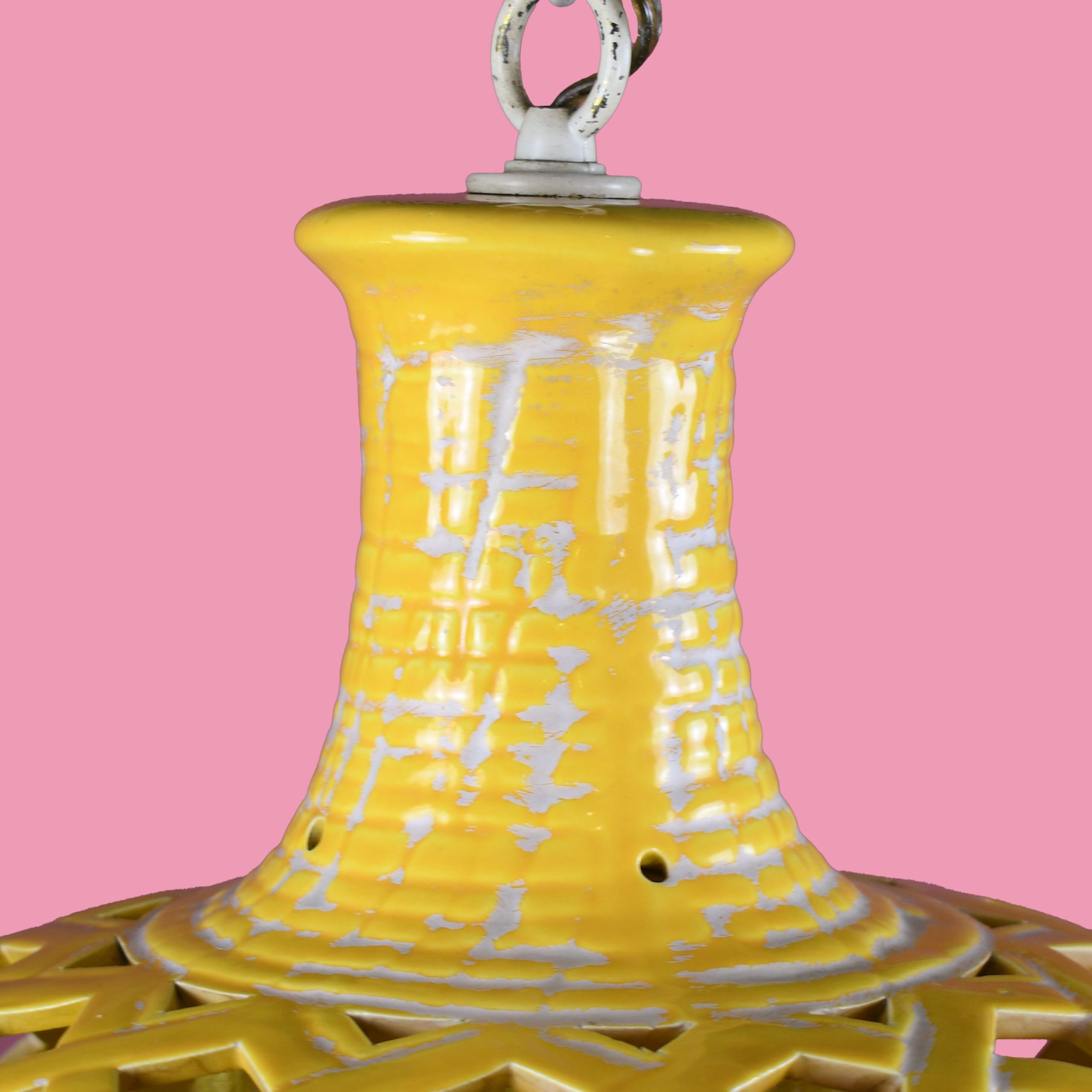 Fretwork Ceramic Yellow Lantern in nice as found VINTAGE condition. There are minor imperfections to the original as found finish. Original wiring. (see photos)