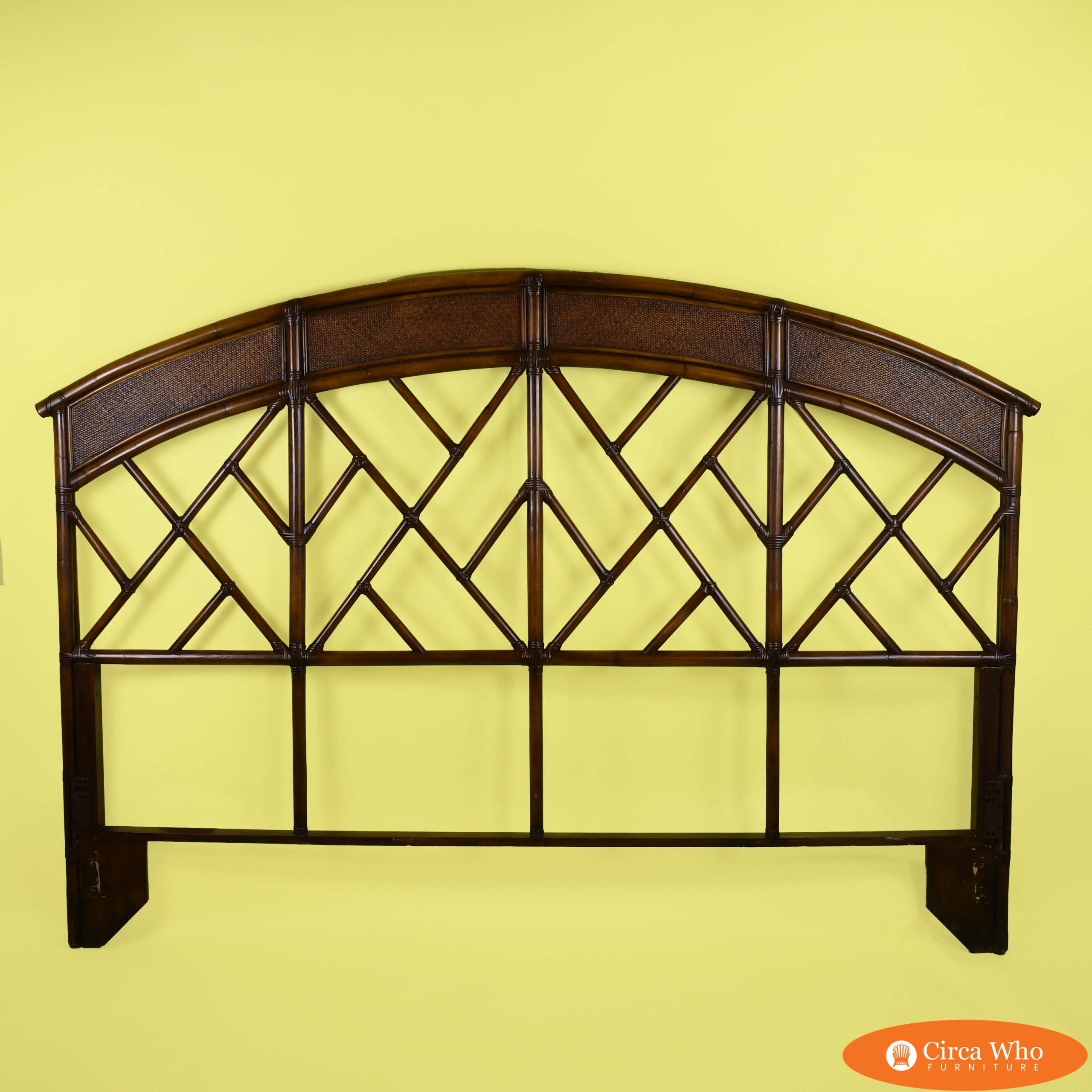Fretwork Rattan King Headboard in nice as found VINTAGE condition. There are minor scuffs, scrapes and wear to the as found finish. (see photos)