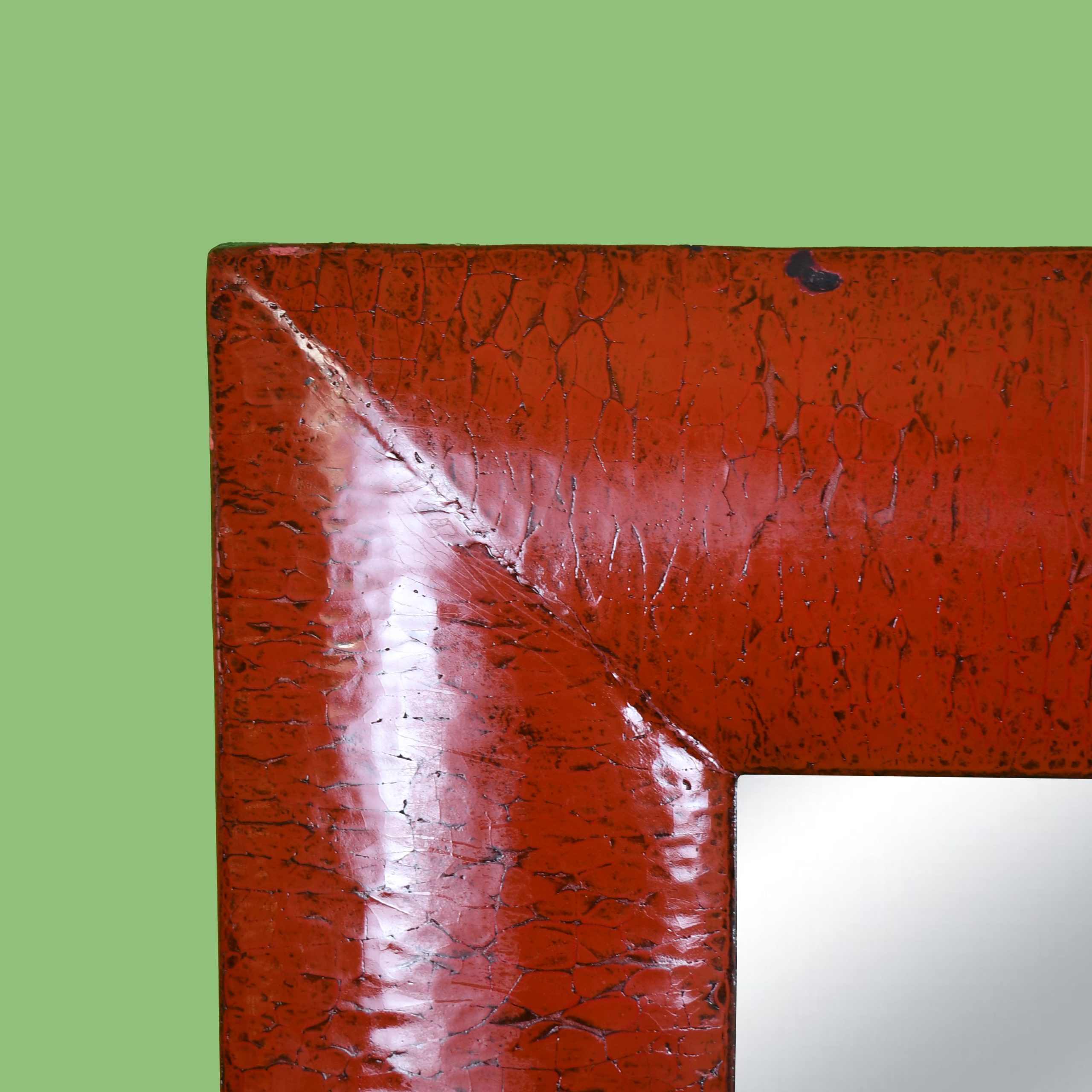 Large Velvet Mirror in nice as found vintage condition. There are scuffs, scrapes and wear to the natural finish. ( See Photos)