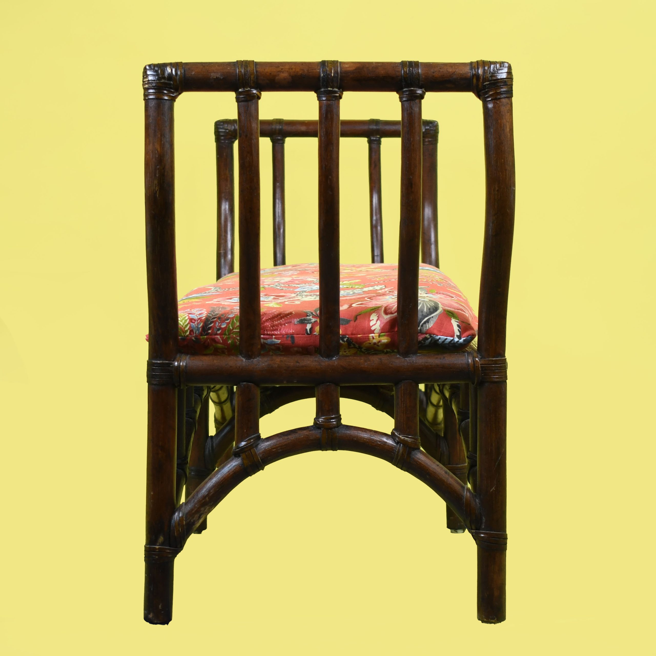 Large Wing Rattan Bench in nice as found VINTAGE condition. There are minor scuffs, scrapes and wear to the as found Finish.Newly Upholstery . (see photos)