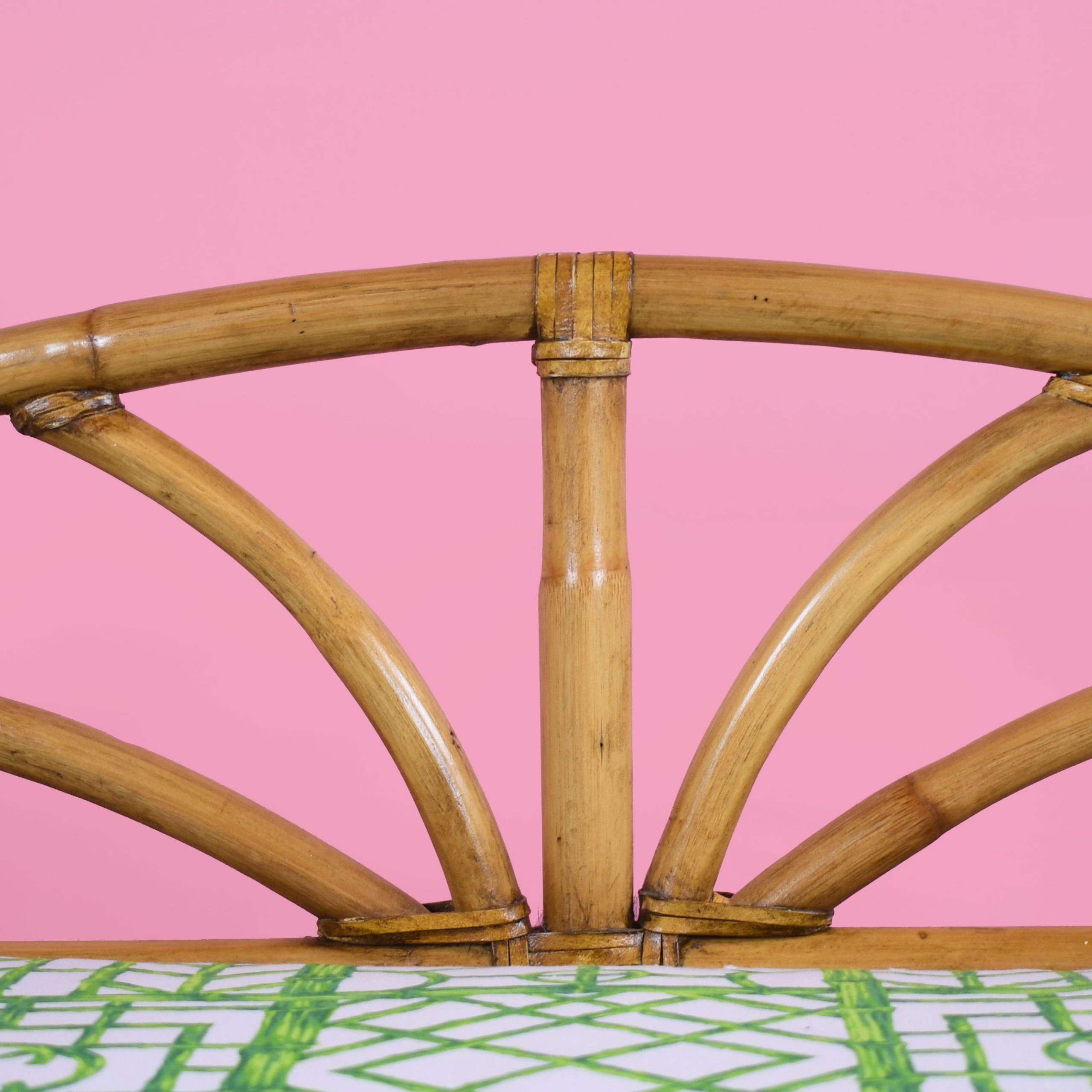 Newly Upholstered Fretwork Rattan Bench