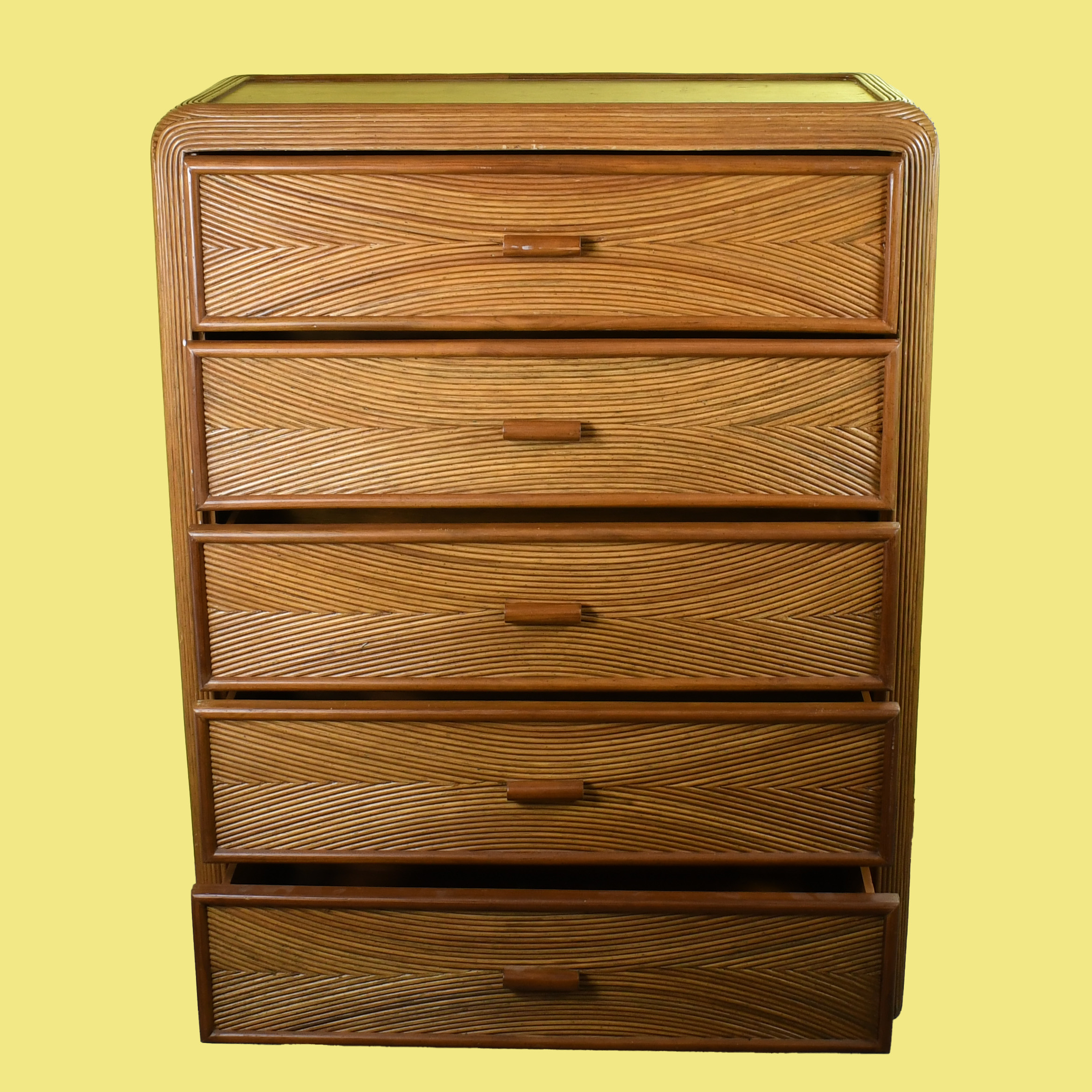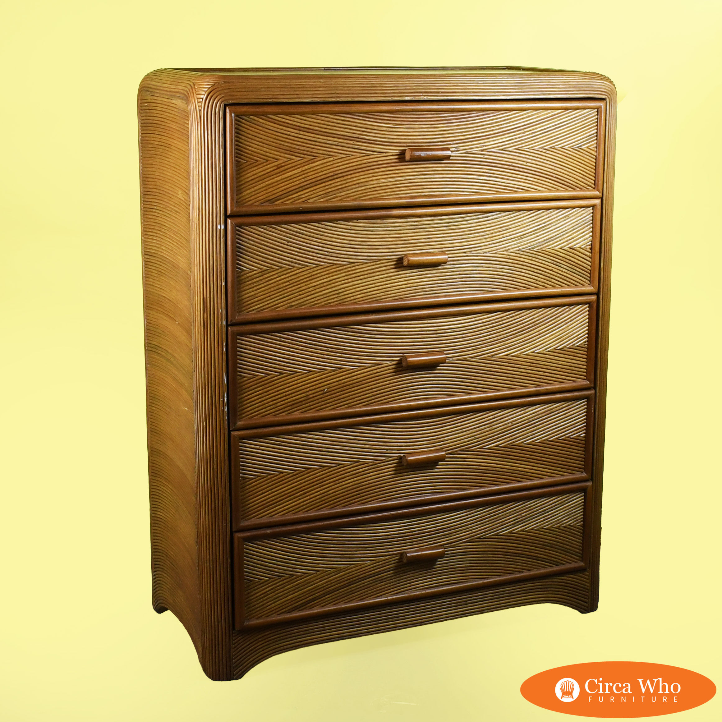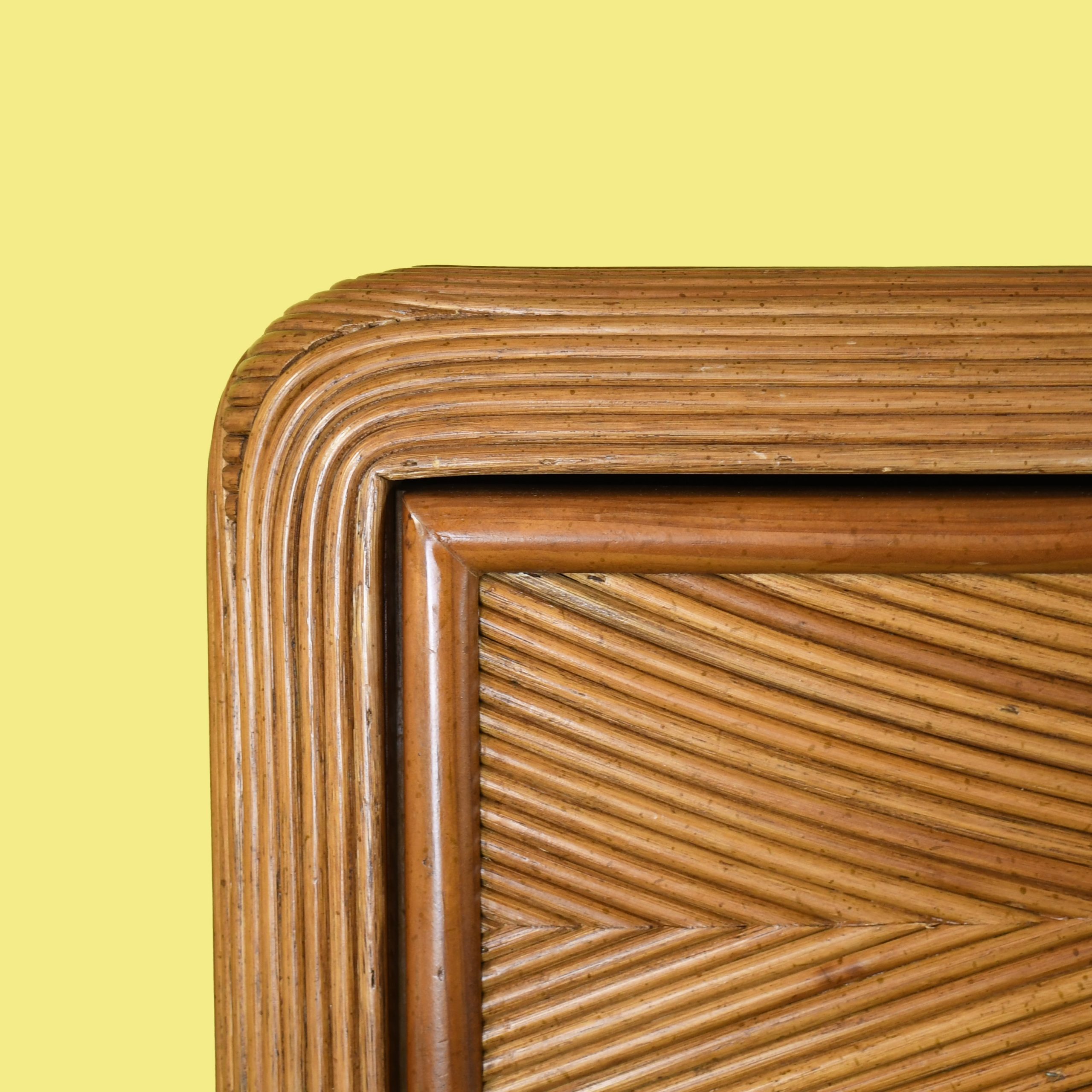 Oversized Pencil Reed Chest in nice as found vintage condition. There are scuffs, scrapes and wear to the original natural finish. (see photos)