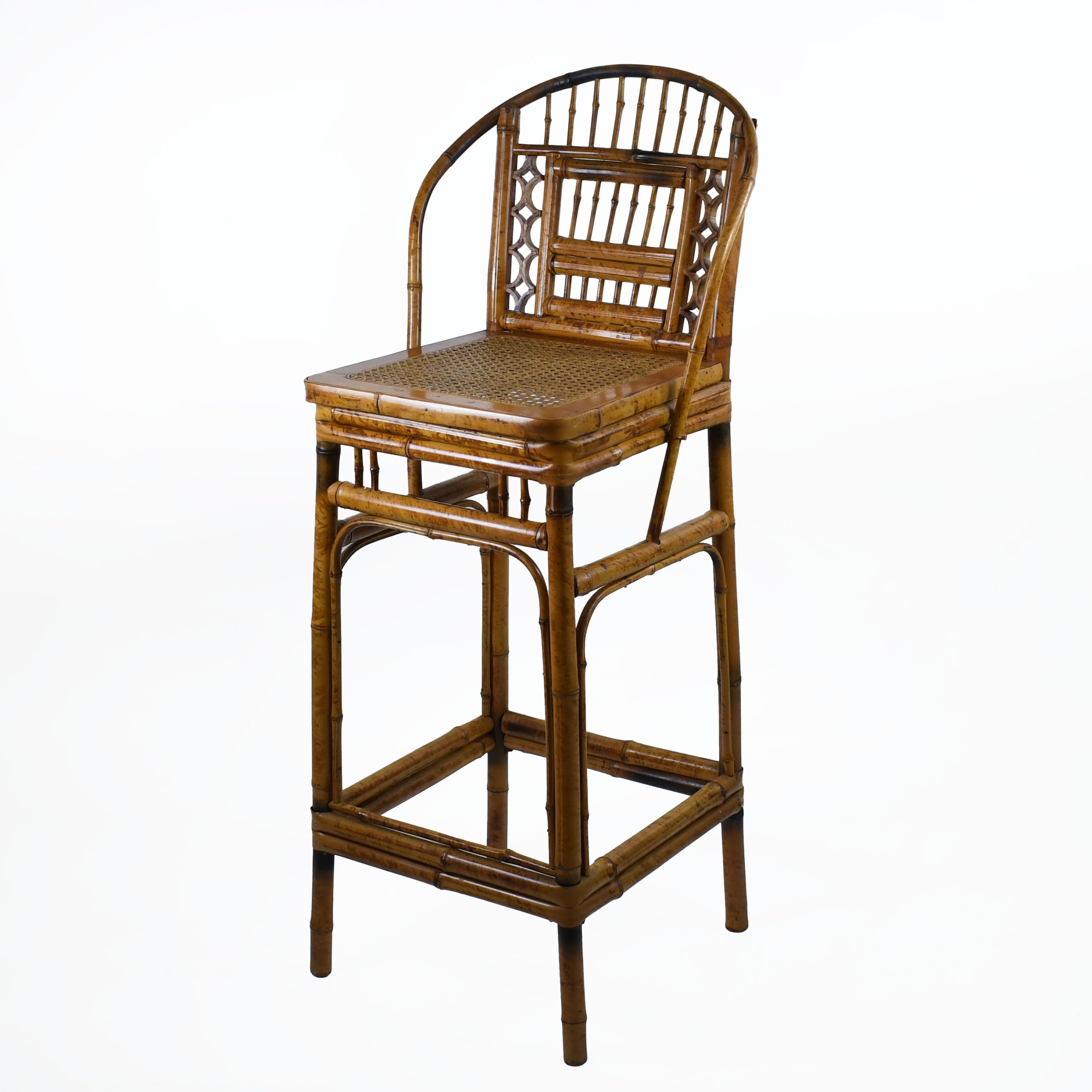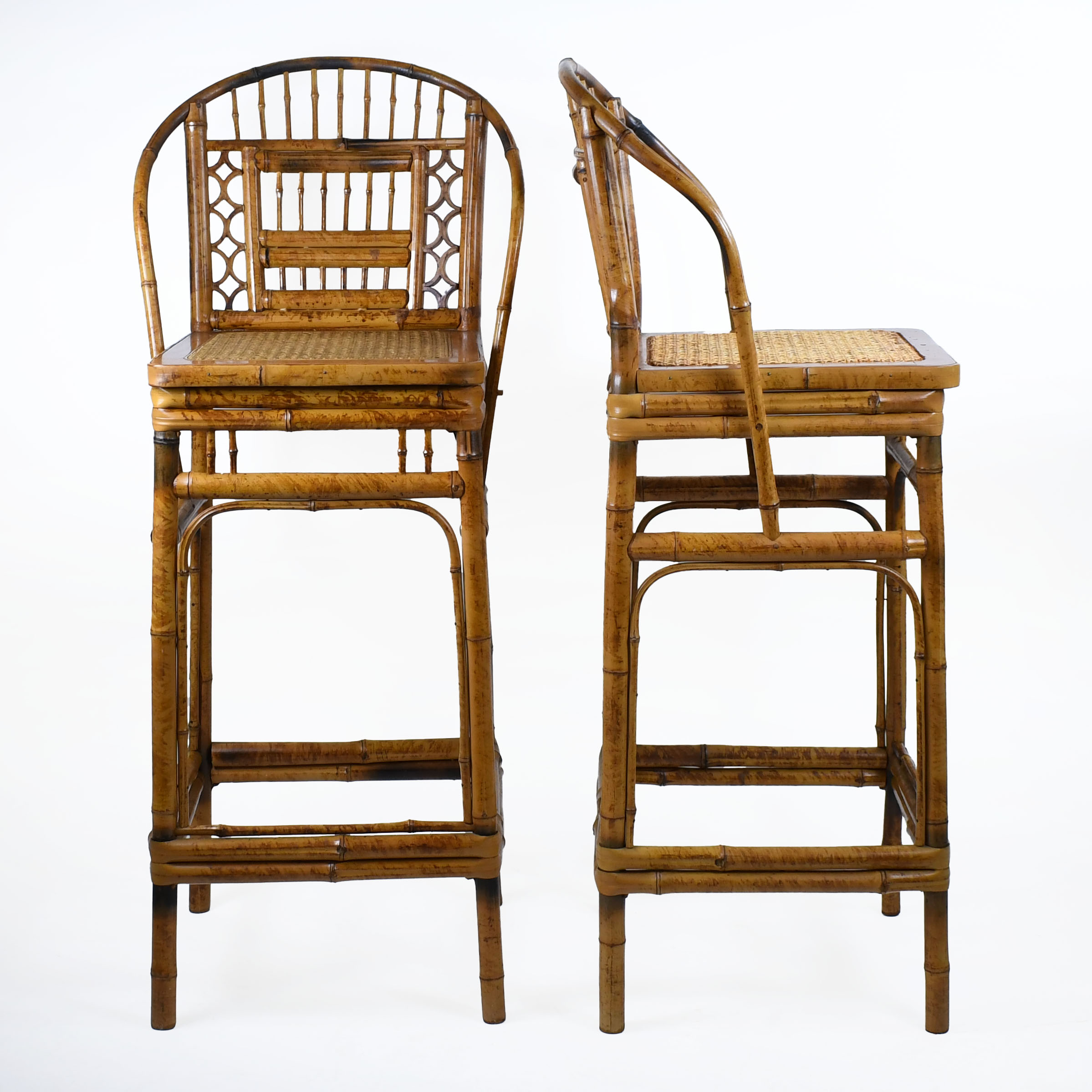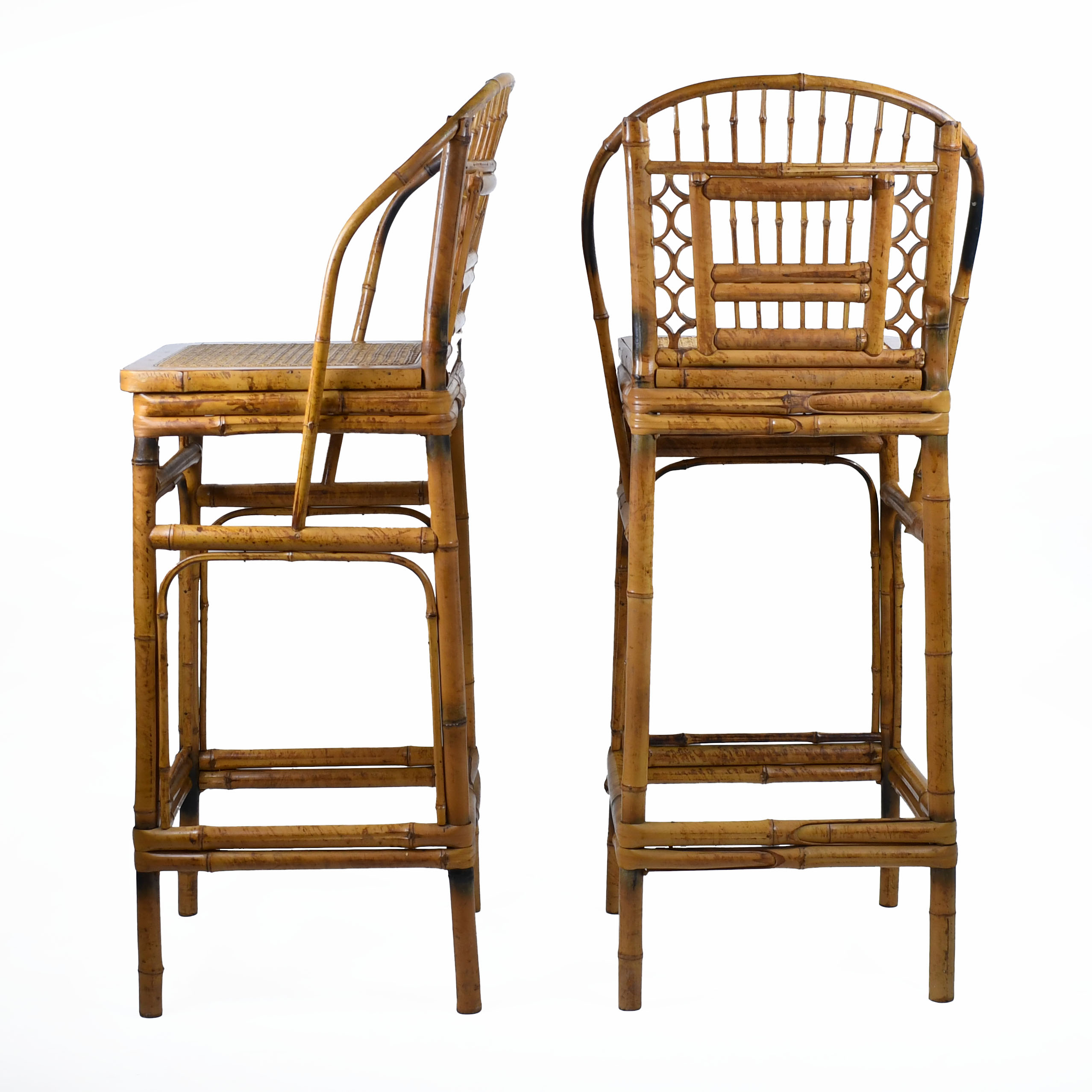 Pair of Bamboo Brighton Counter Stools in nice as found VINTAGE condition. There are minor scuffs, scrapes and wear to the as found finish. (see photos)
