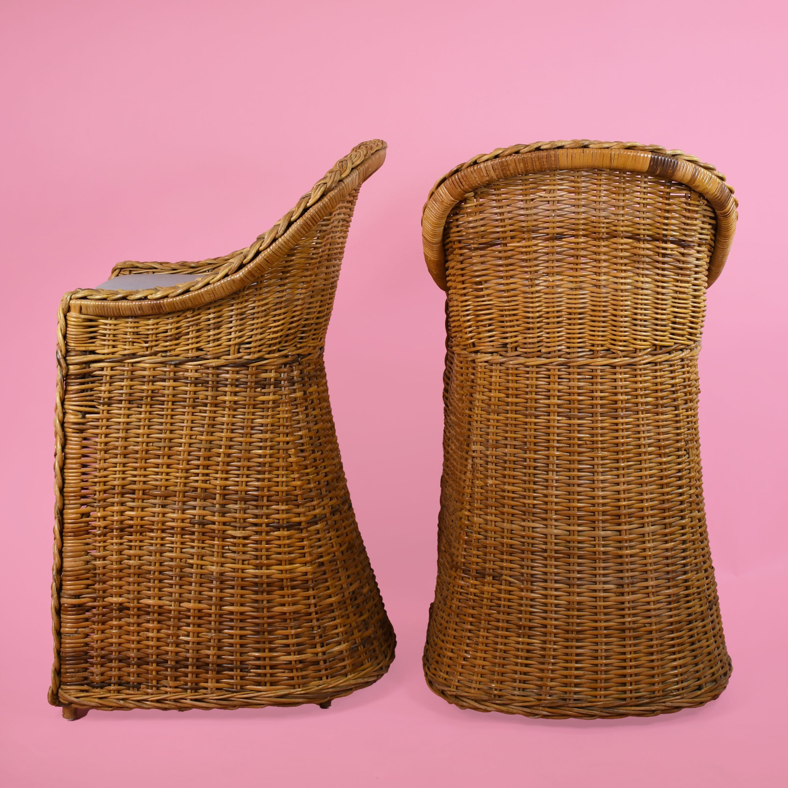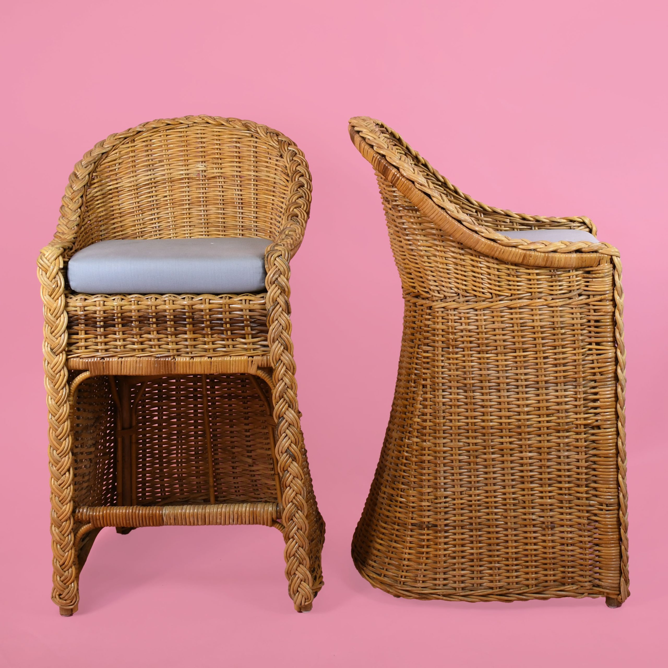 Pair of Braided Rattan Counter Stools