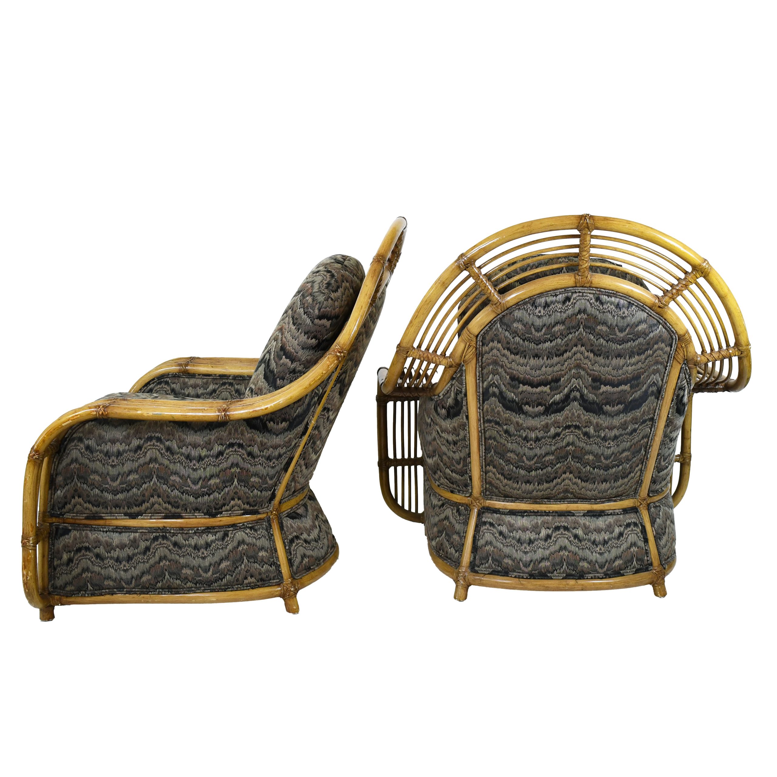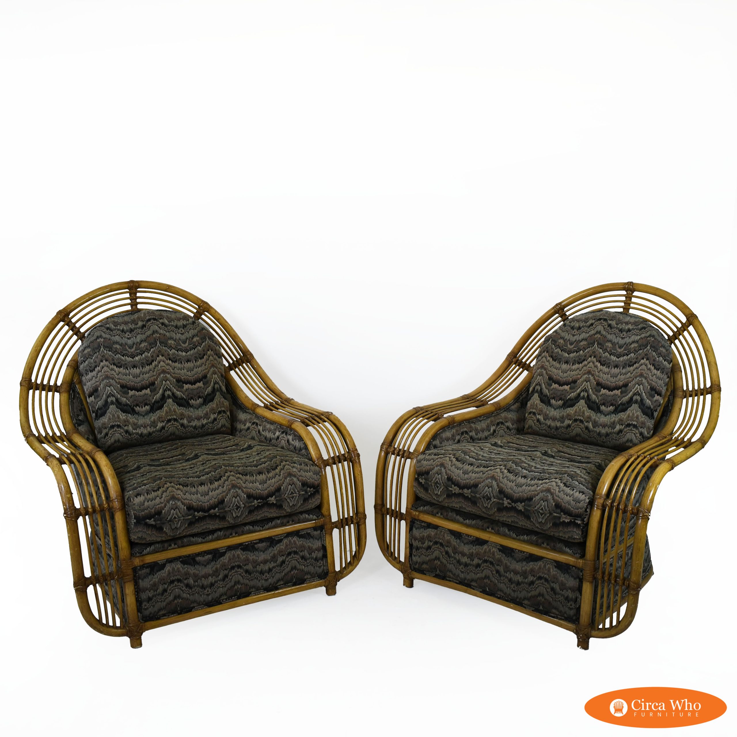 Pair of Brielle Chairs Attributed to Henry Olko in nice as found vintage condition. There are minor scuffs, scrapes and wear to the original finish. As found upholstery. (see photos)
