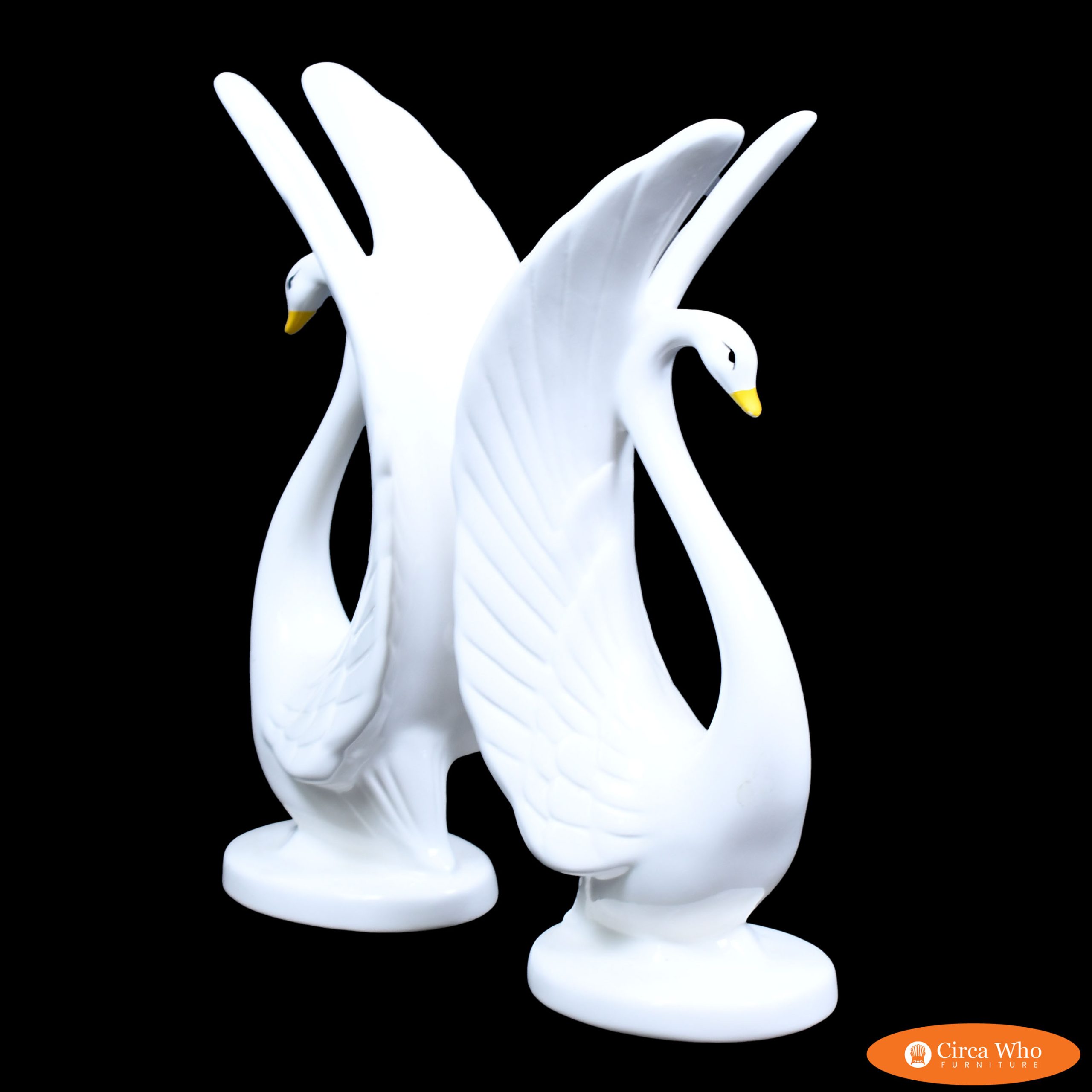Pair of Ceramic Book Ends Swans in nice as found VINTAGE condition. There are minor scuffs, scrapes and wear to the glazed finish. (see photos)