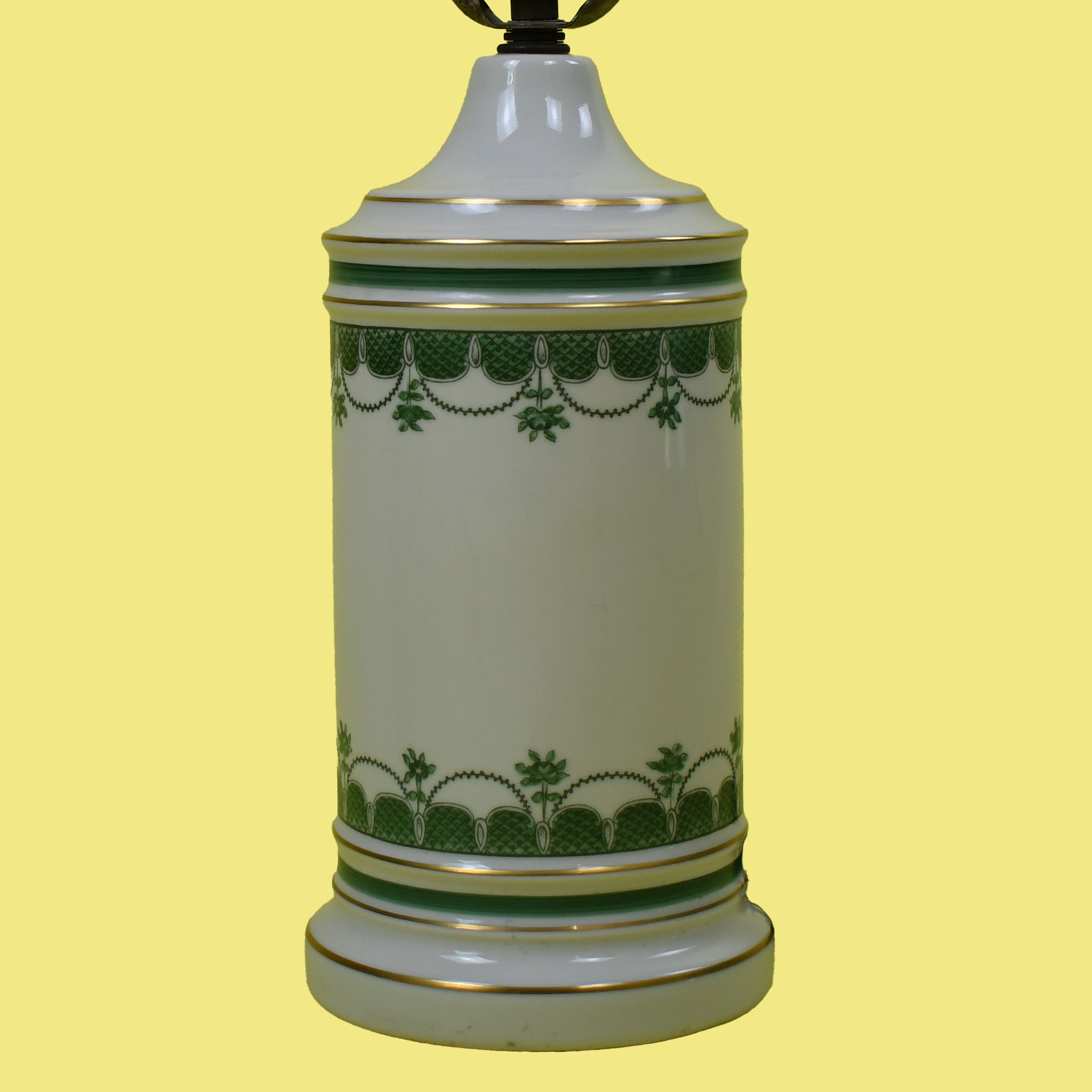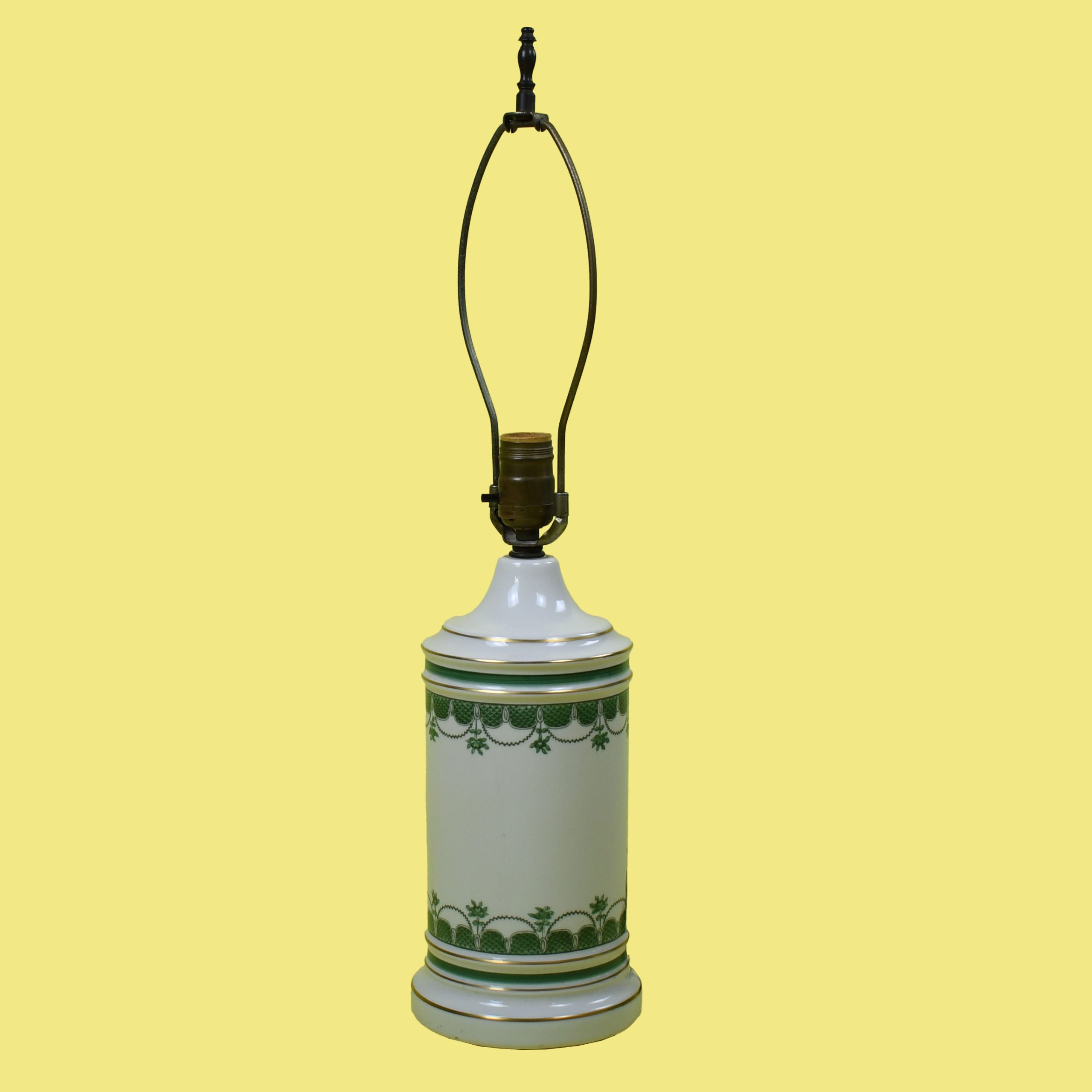 Pair of Green and Ivory Colonial Lamps in nice as found VINTAGE condition. There are minor imperfections to the original as found finish. Original wiring. (see photos)