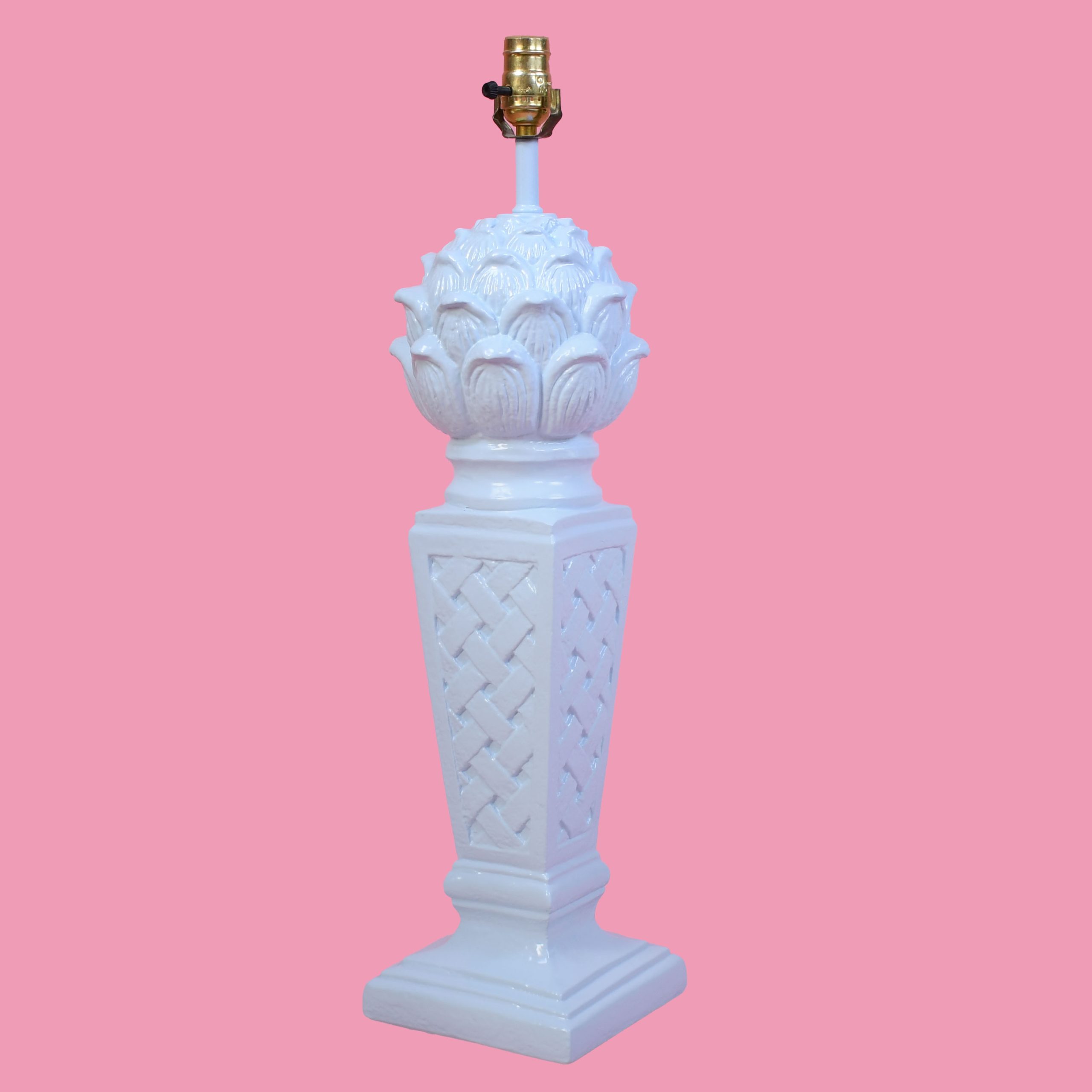 Pair of Hollywood Regency Artichoke Table Lamps in nice as found VINTAGE condition. There are minor imperfections to the Newly Lacquered finish. Original wiring. (see photos)
