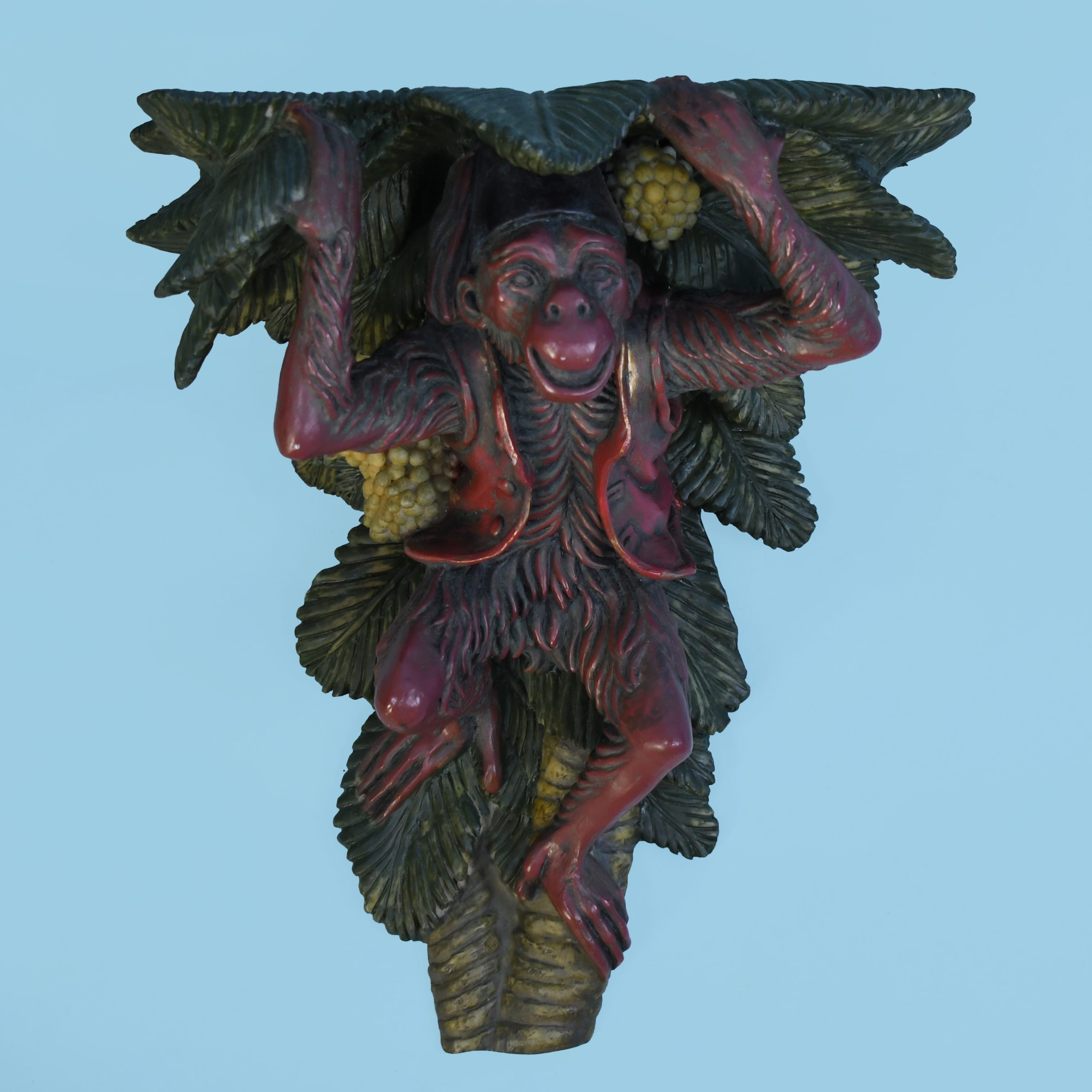 Pair of Monkey With Grapes Wall Sconces in nice as found VINTAGE condition. There are minor scuffs, scrapes and wear to the glazed finish. (see photos)