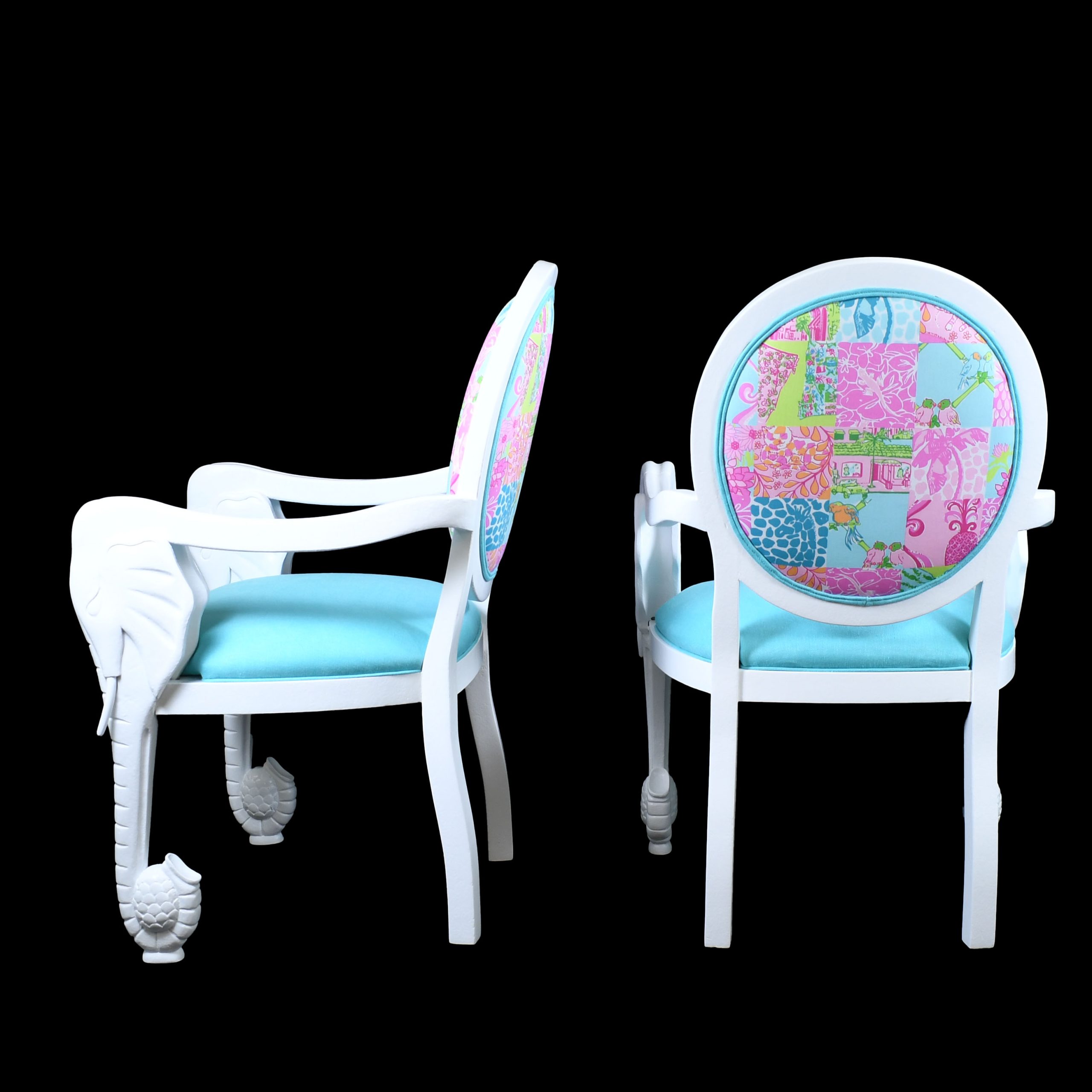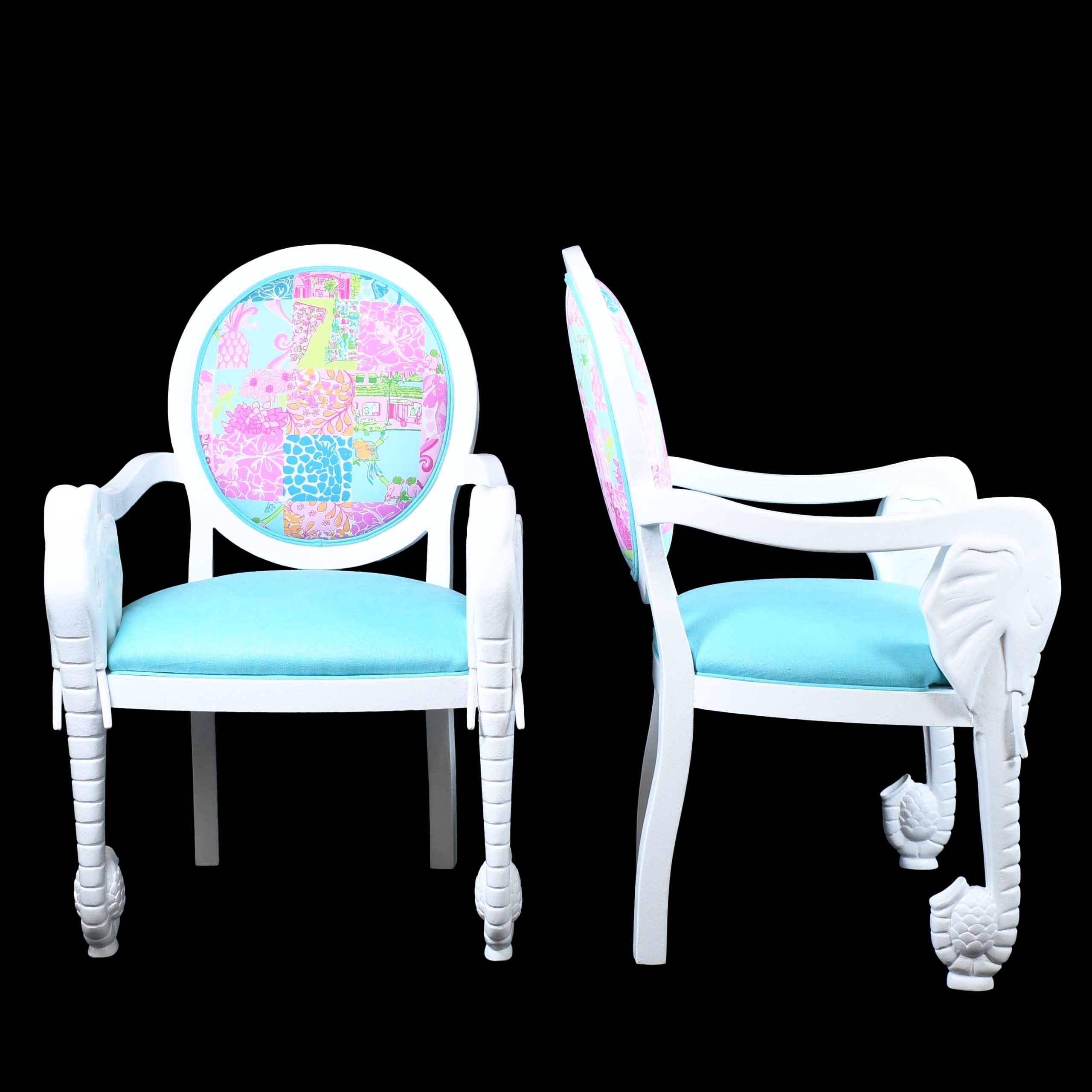 Pair of Newly Lacquered Elephant Chairs Upholstered in Lilly Pulitzer Fabric