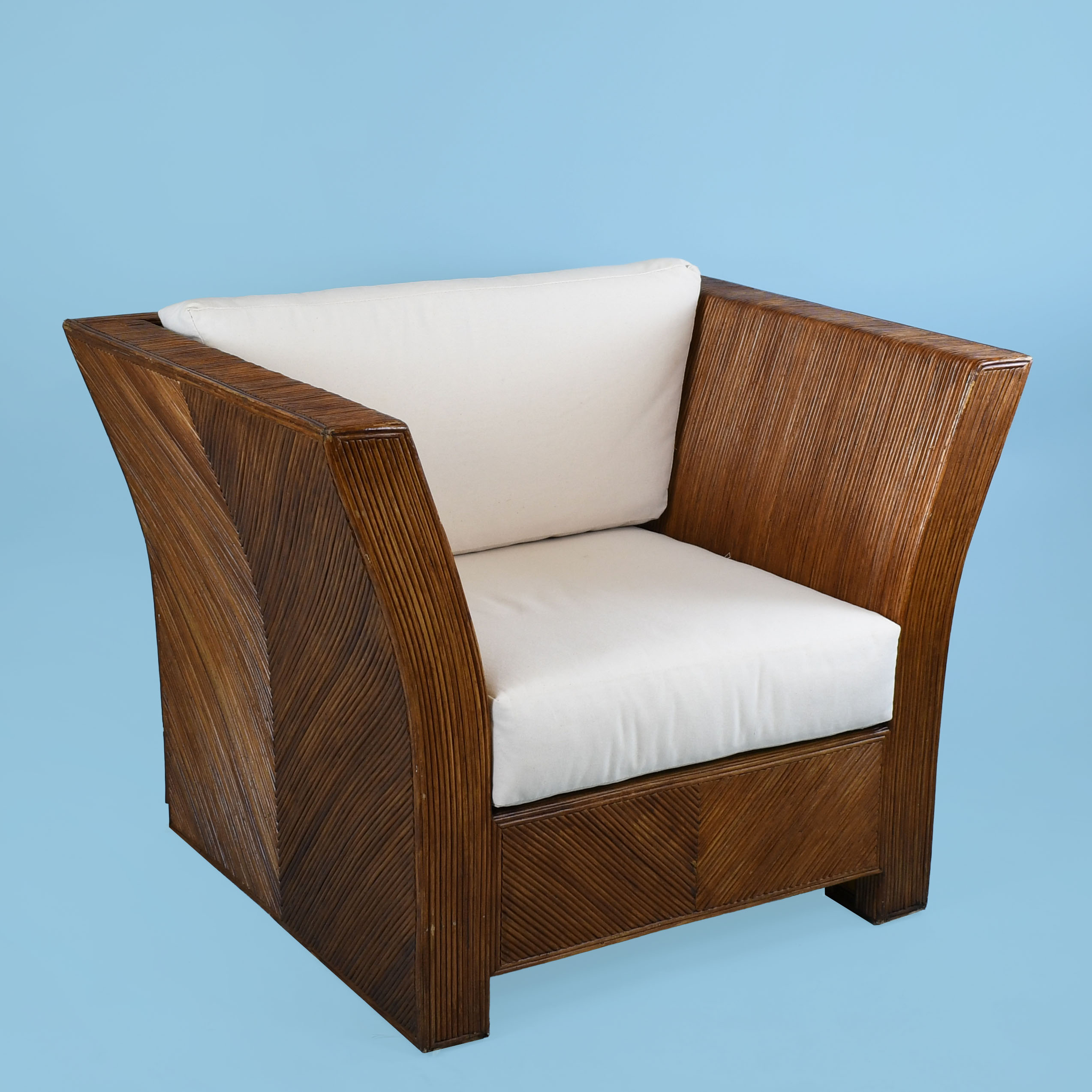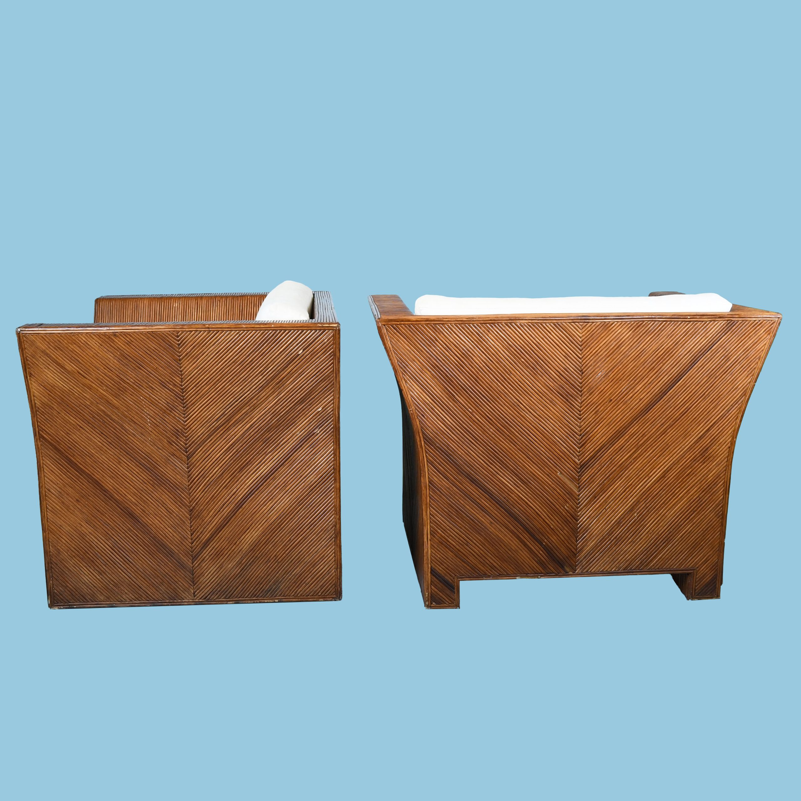 Pair of Pencil Reed Chevron Tuxedo Lounge Chairs