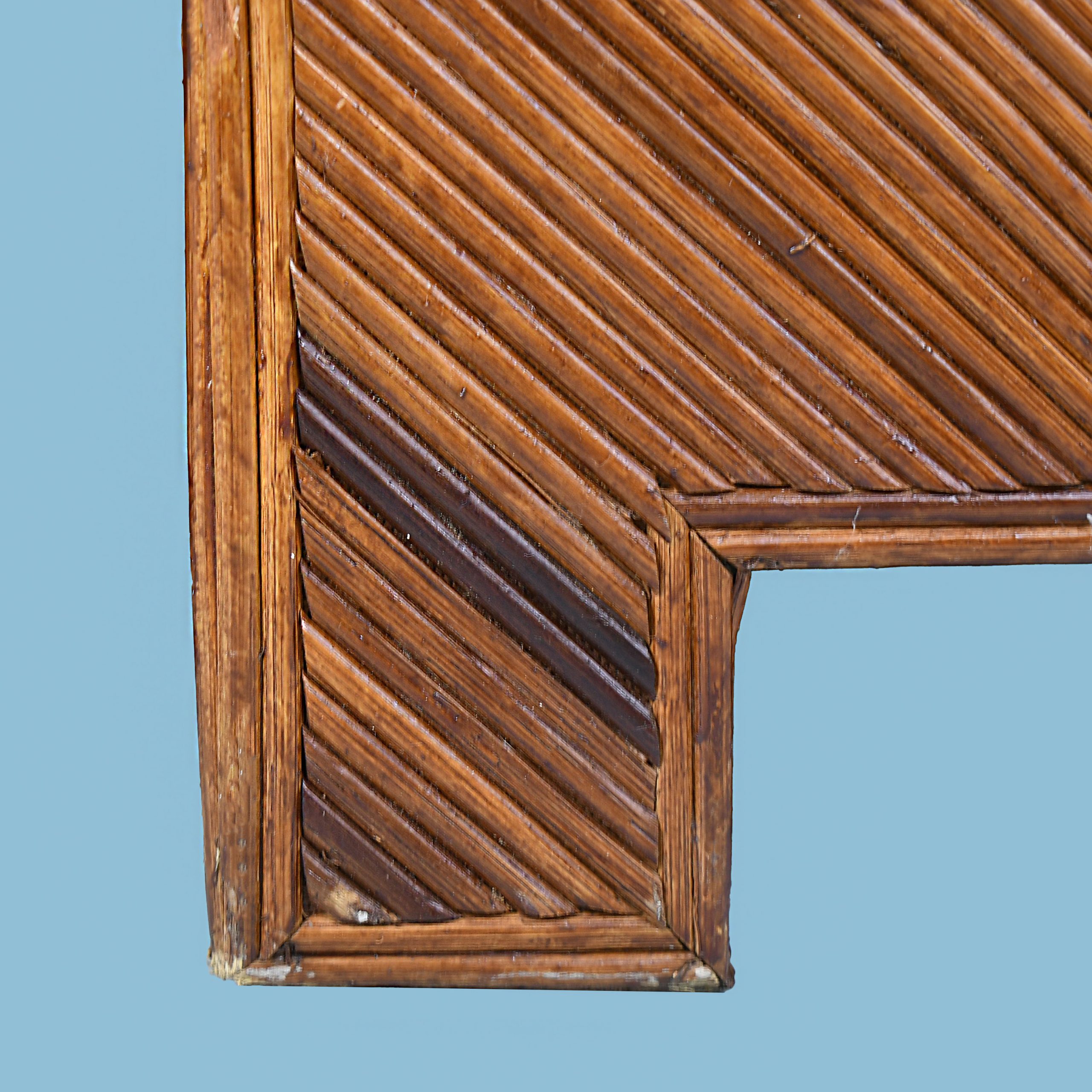Pair of Pencil Reed Chevron Tuxedo Lounge Chairs in nice as found vintage condition. There are minor scuffs, scrapes and wear to the original finish. As found upholstery. (see photos)