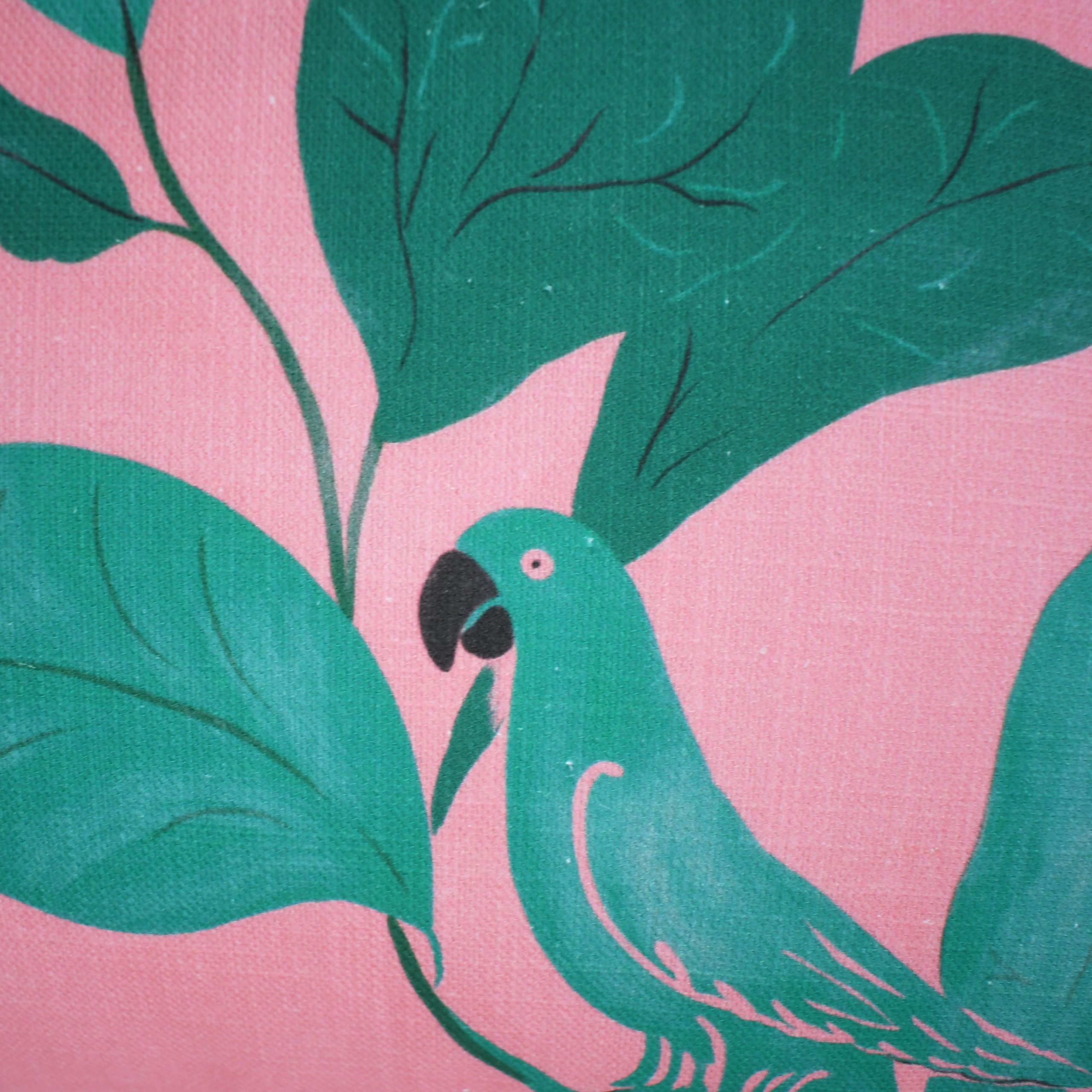 Pair of Pink Palmetto Aviary Pillows Feather/Down Inserts, zippered opening. Pillows are NEW and made for Circa Who.