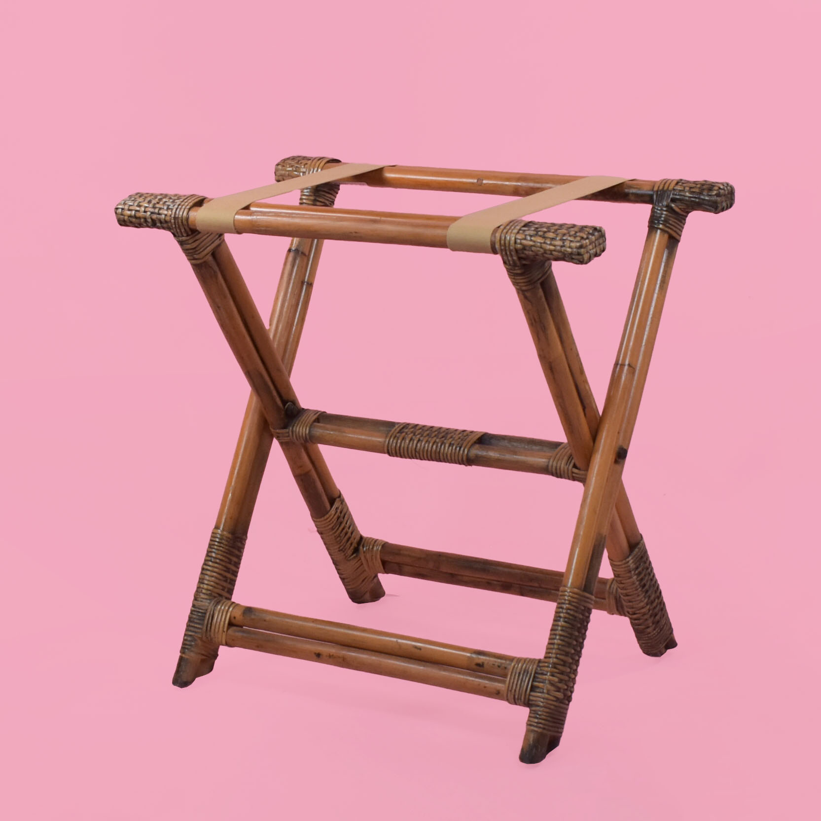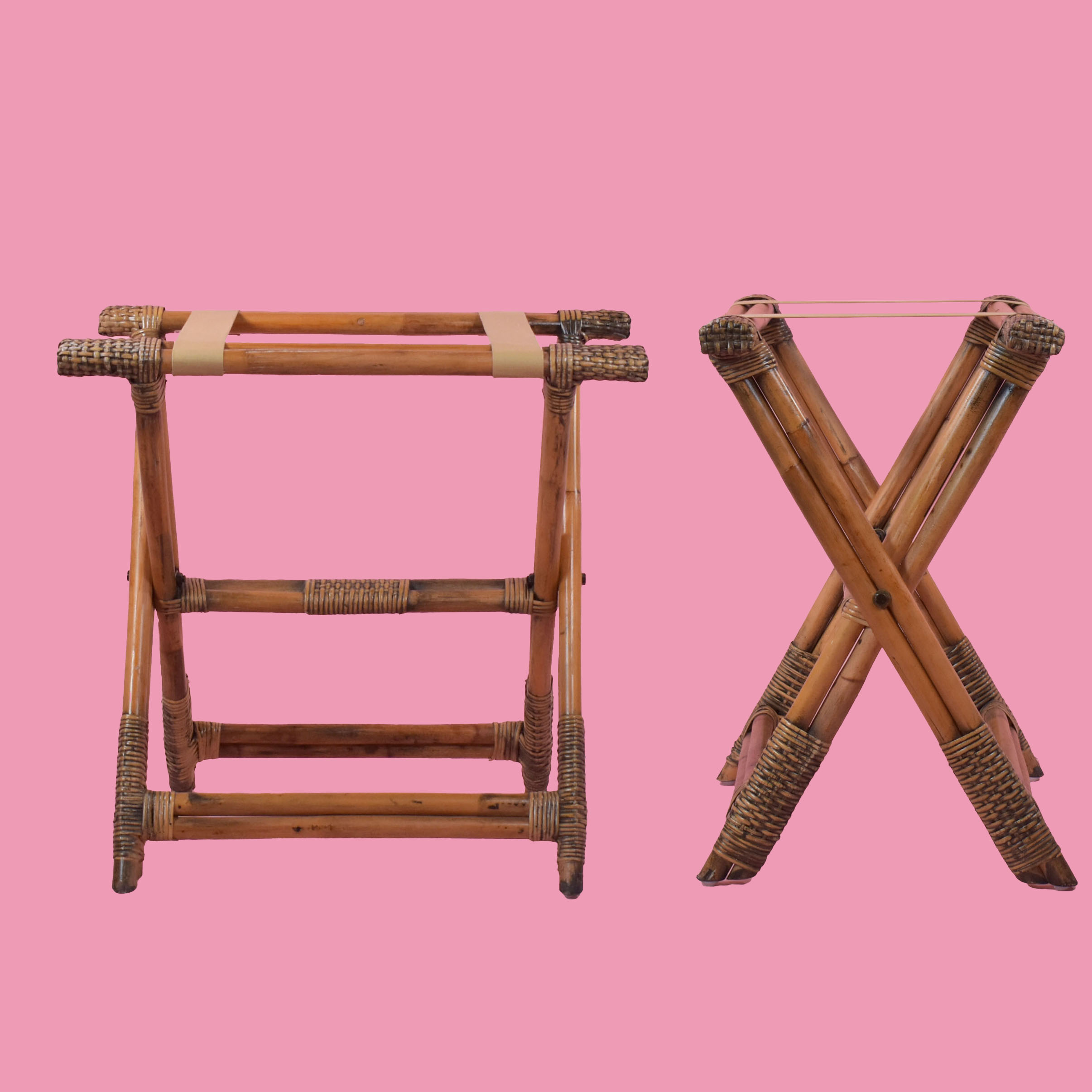 Pair of Rattan Luggage Holders in nice as found VINTAGE condition. There are minor scuffs, scrapes and wear to the as found finish. (see photos)