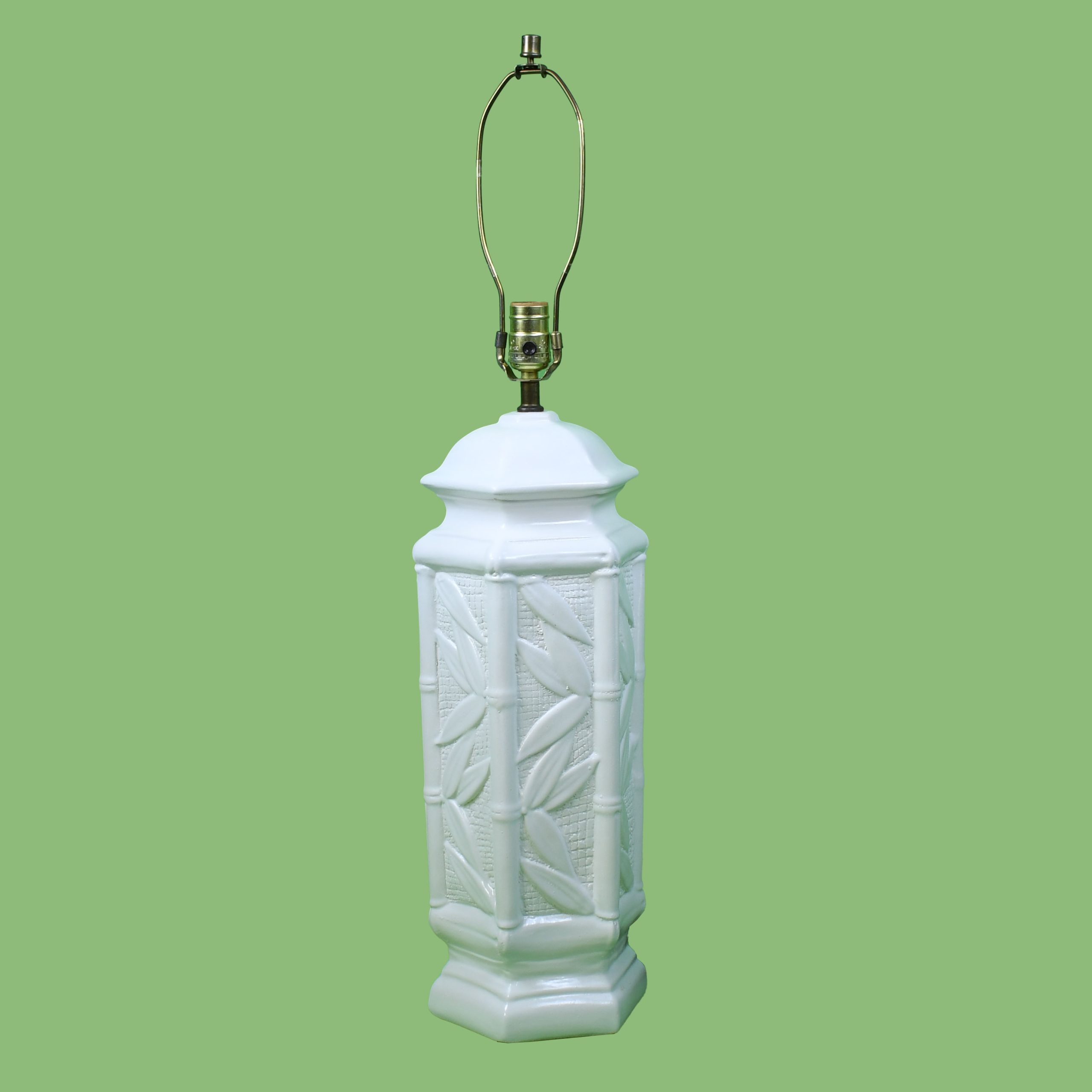 Pair of White Faux Bamboo Leaves Table Lamp in nice as found VINTAGE condition. There are minor imperfections to the original as found finish. Original wiring. (see photos)