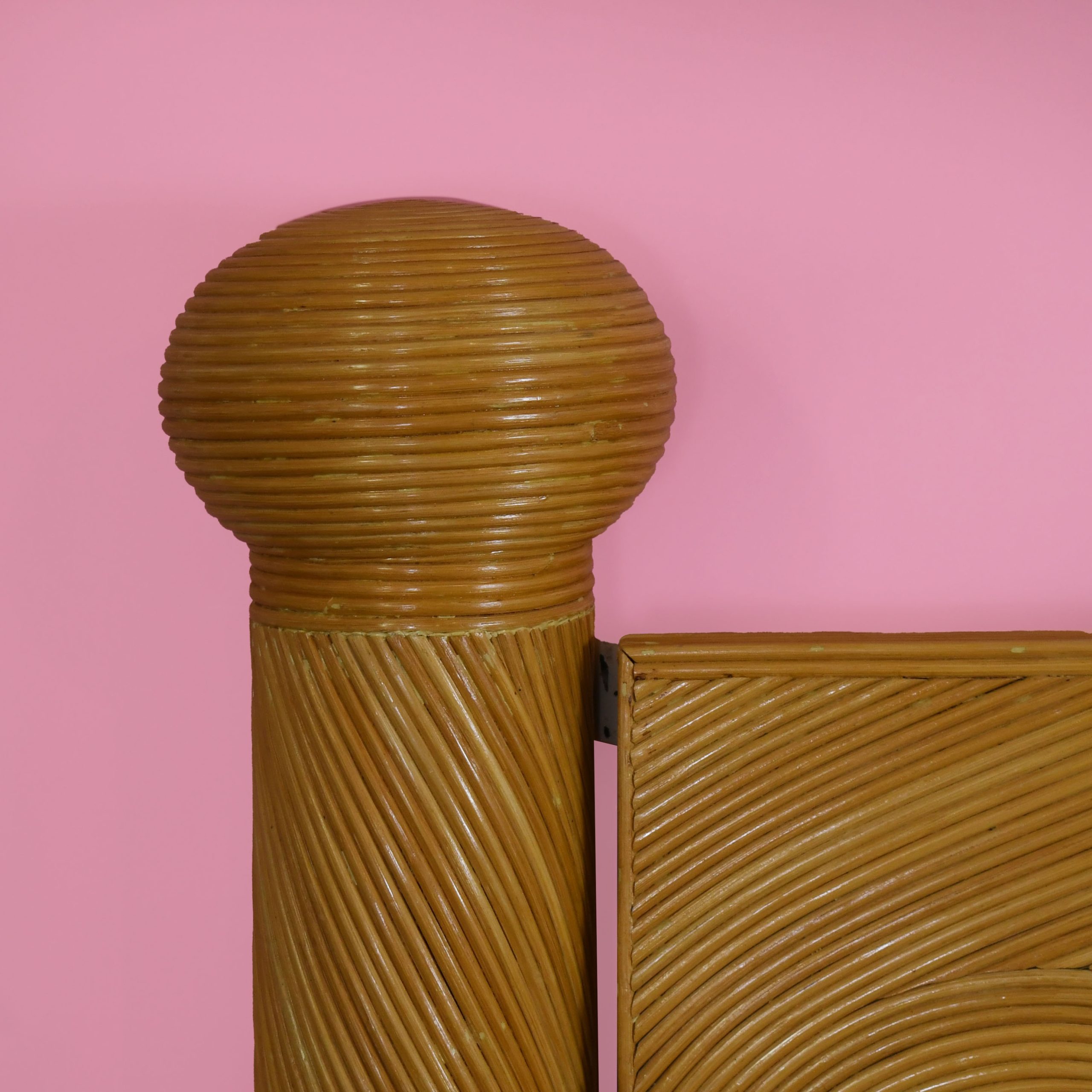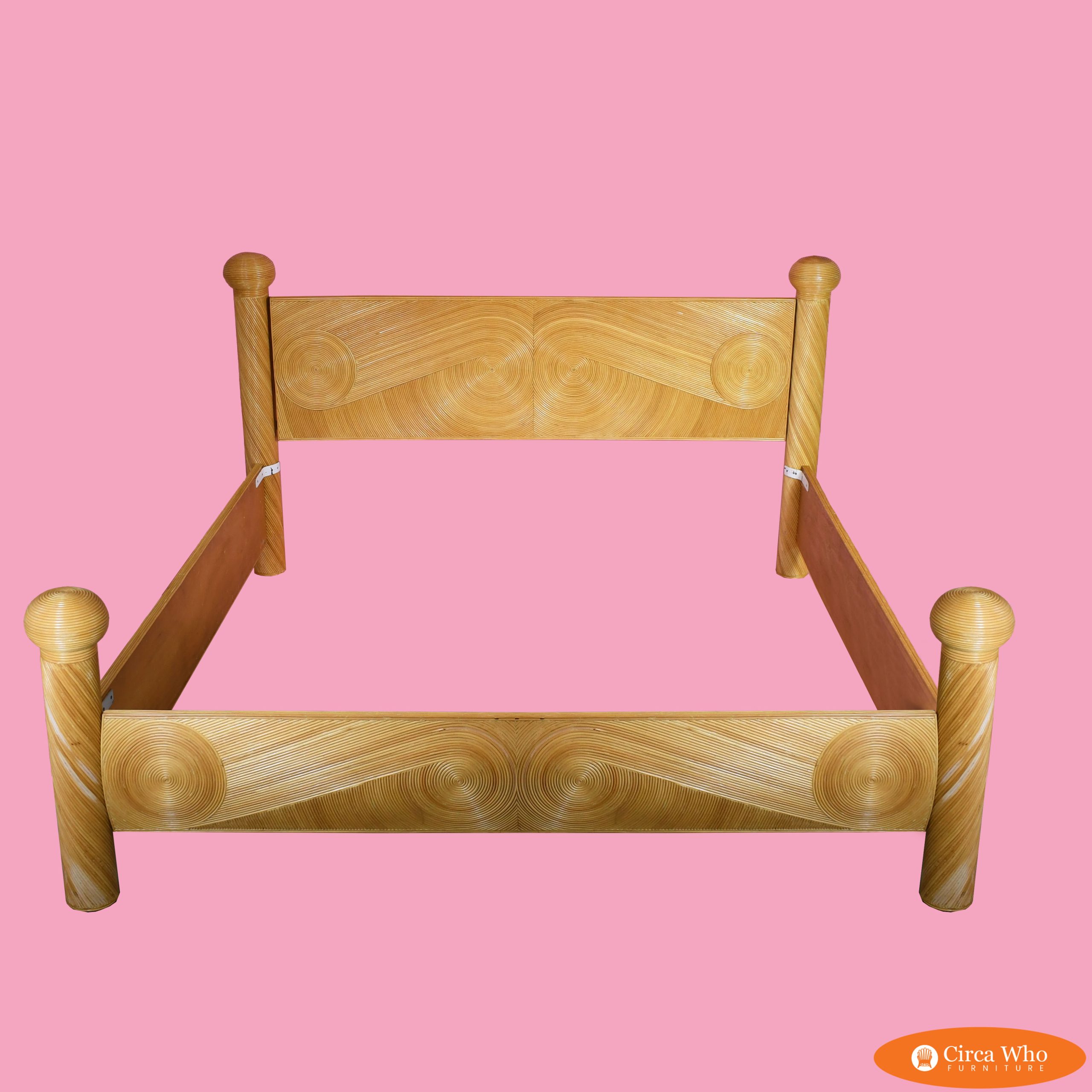 Pencil Reed Crespi Style King Size Bed Frame in nice as found vintage condition. There are scuffs, scrapes and wear to the original natural finish. (see photos)