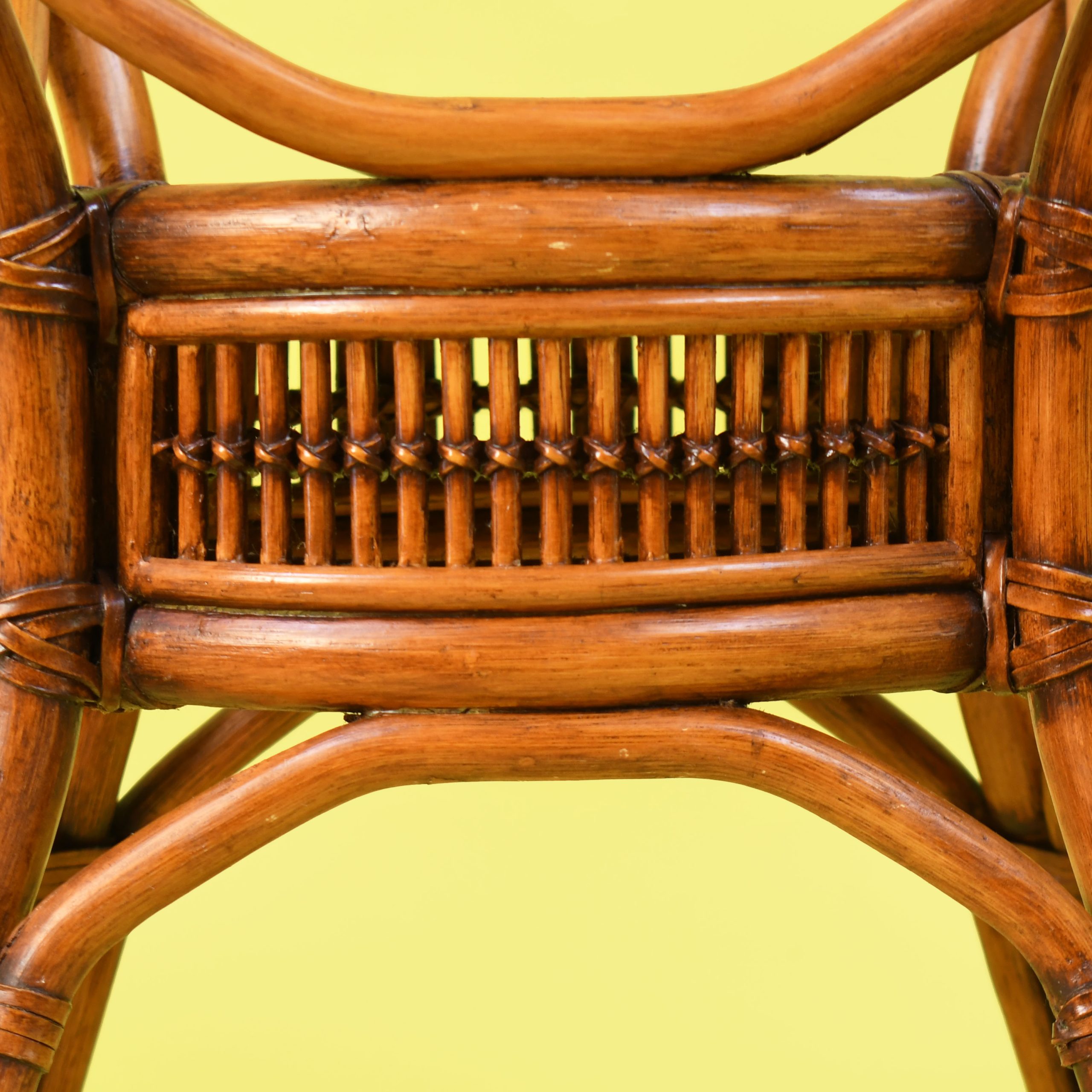 Round Rattan Coastal Dining Table Base in nice as found VINTAGE condition. There are minor scuffs, scrapes and wear to the as found finish. (see photos)
