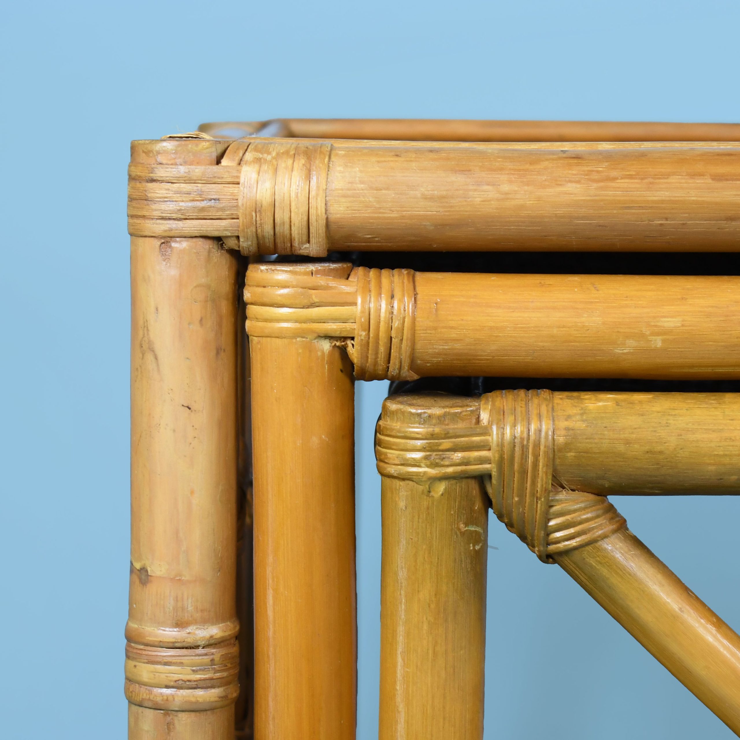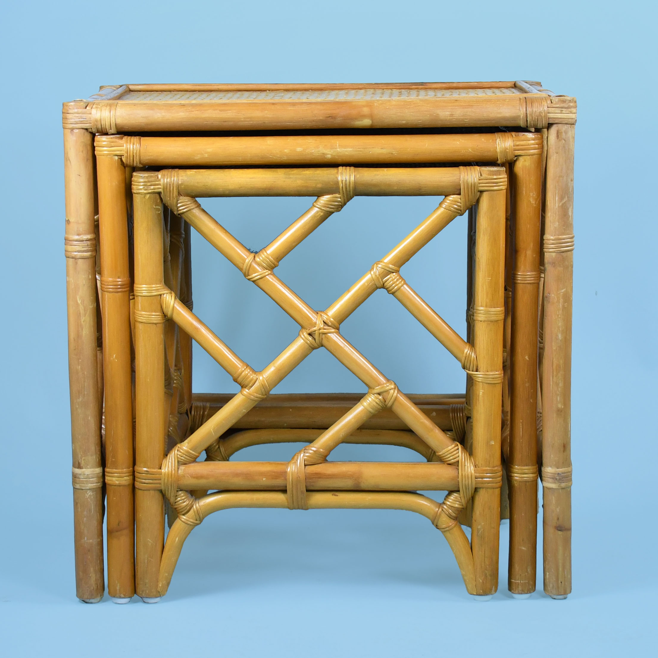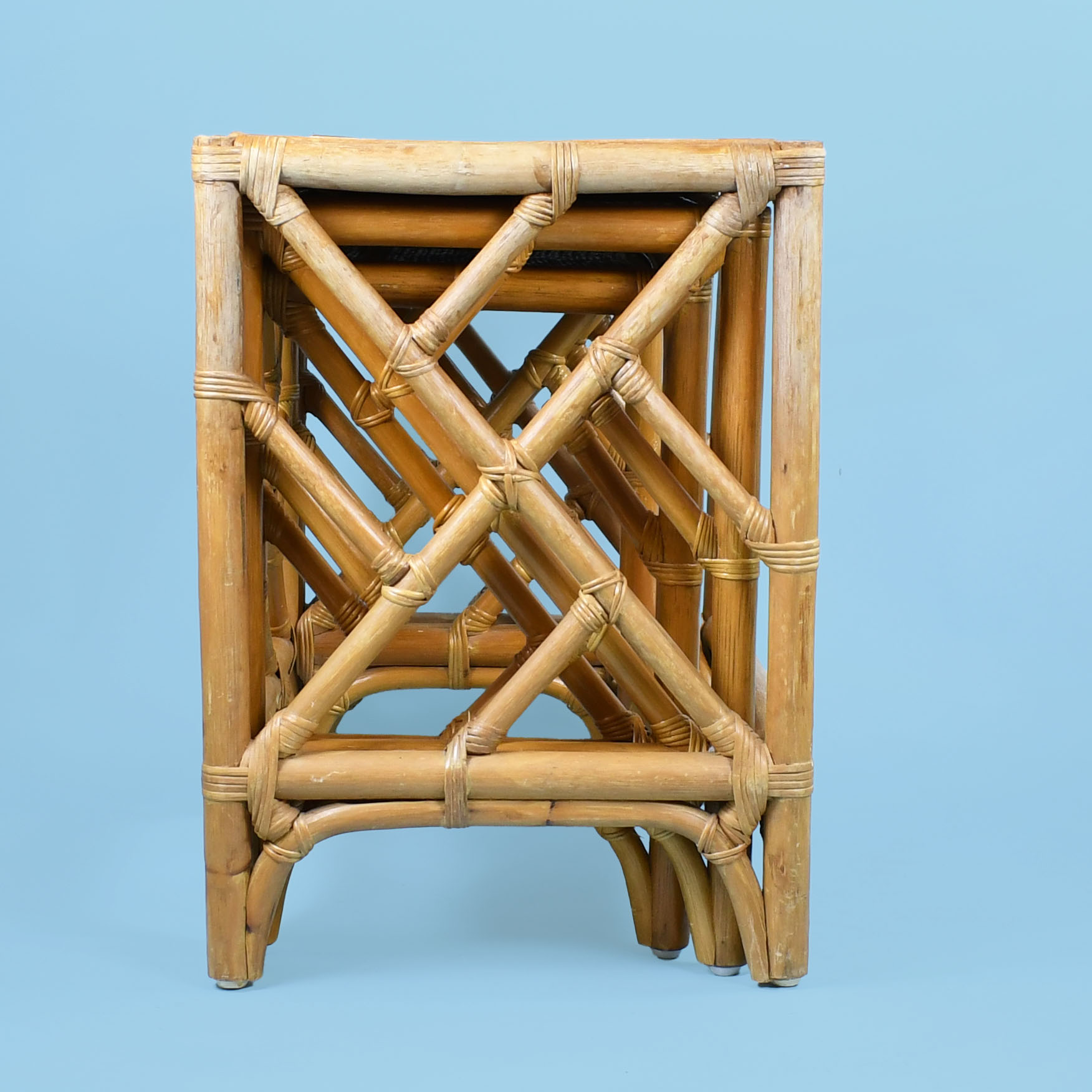Set of 3 Rattan Fretwork Nesting Tables in nice as found VINTAGE condition. There are minor scuffs, scrapes and wear to the as found finish. (see photos)