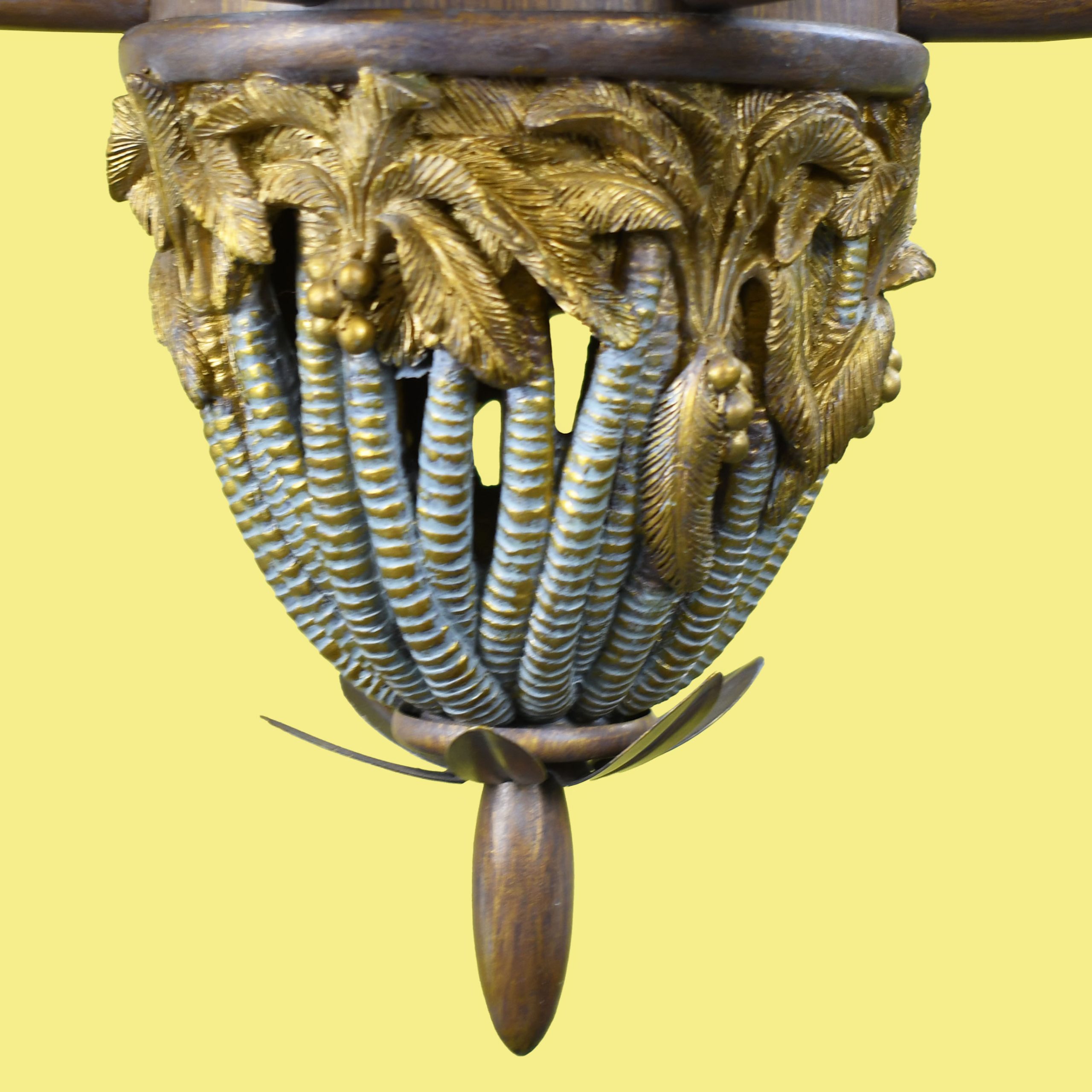 Vintage Faux Bamboo Palms Chandelier in nice as found VINTAGE condition. There are minor imperfections to the original as found finish. Original wiring. (see photos)