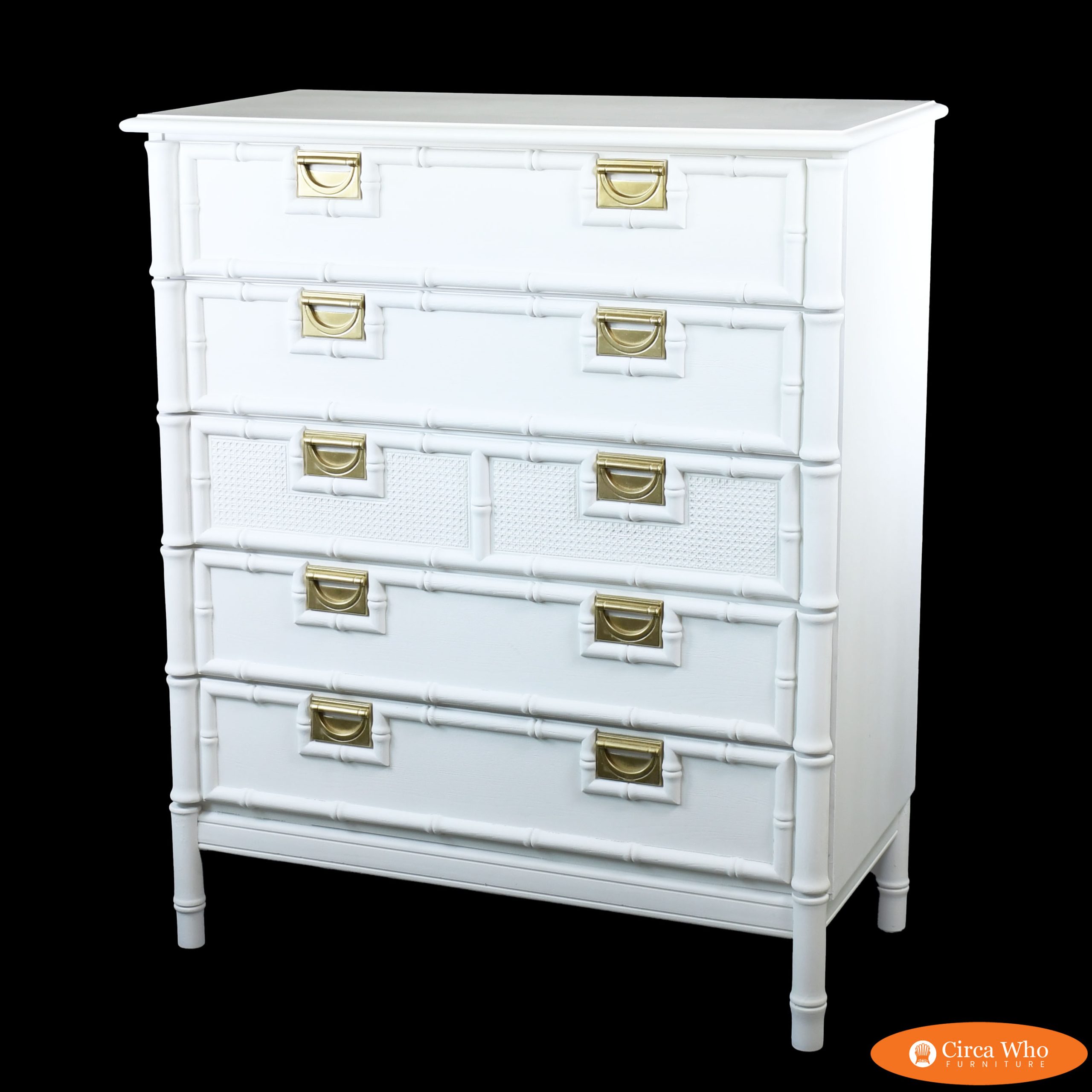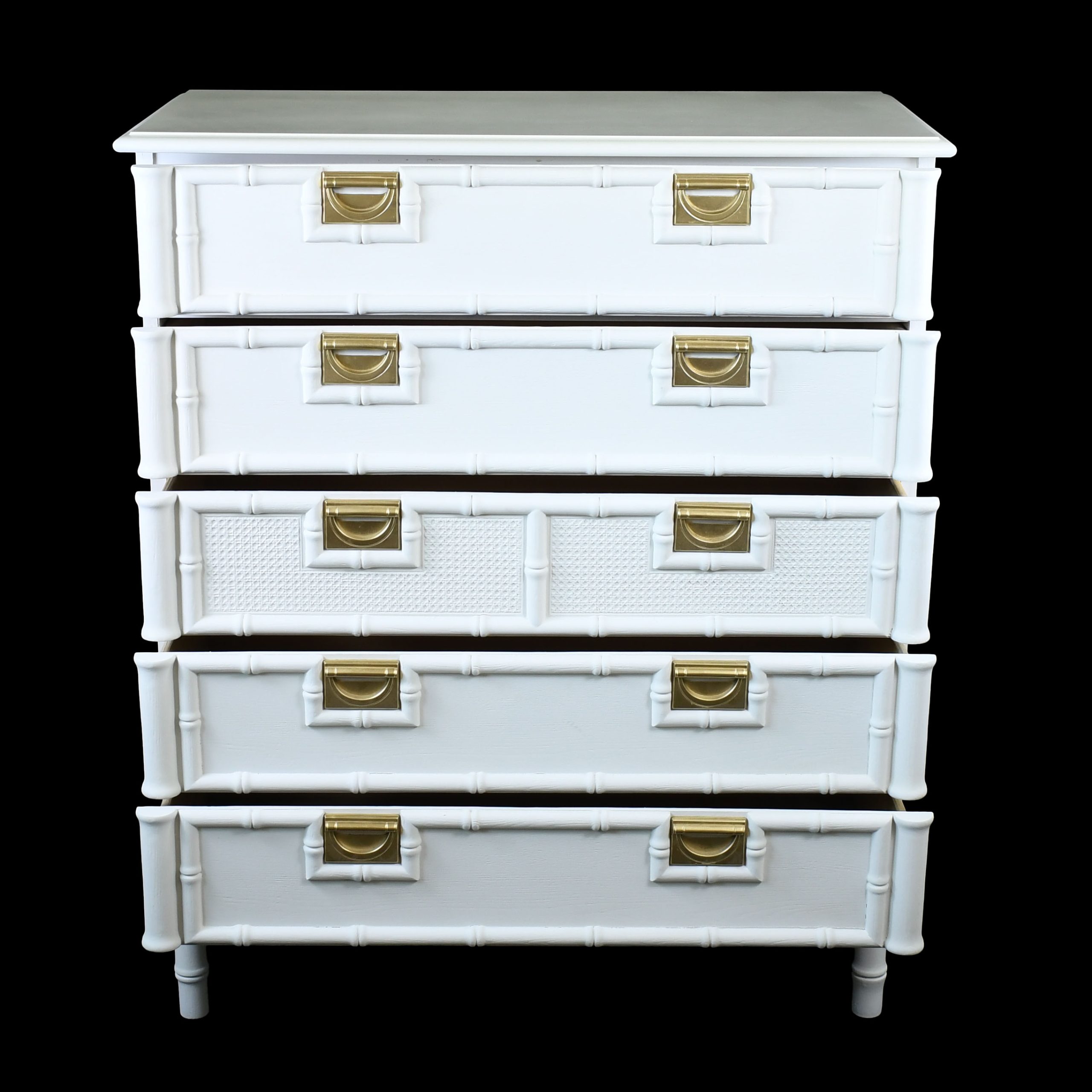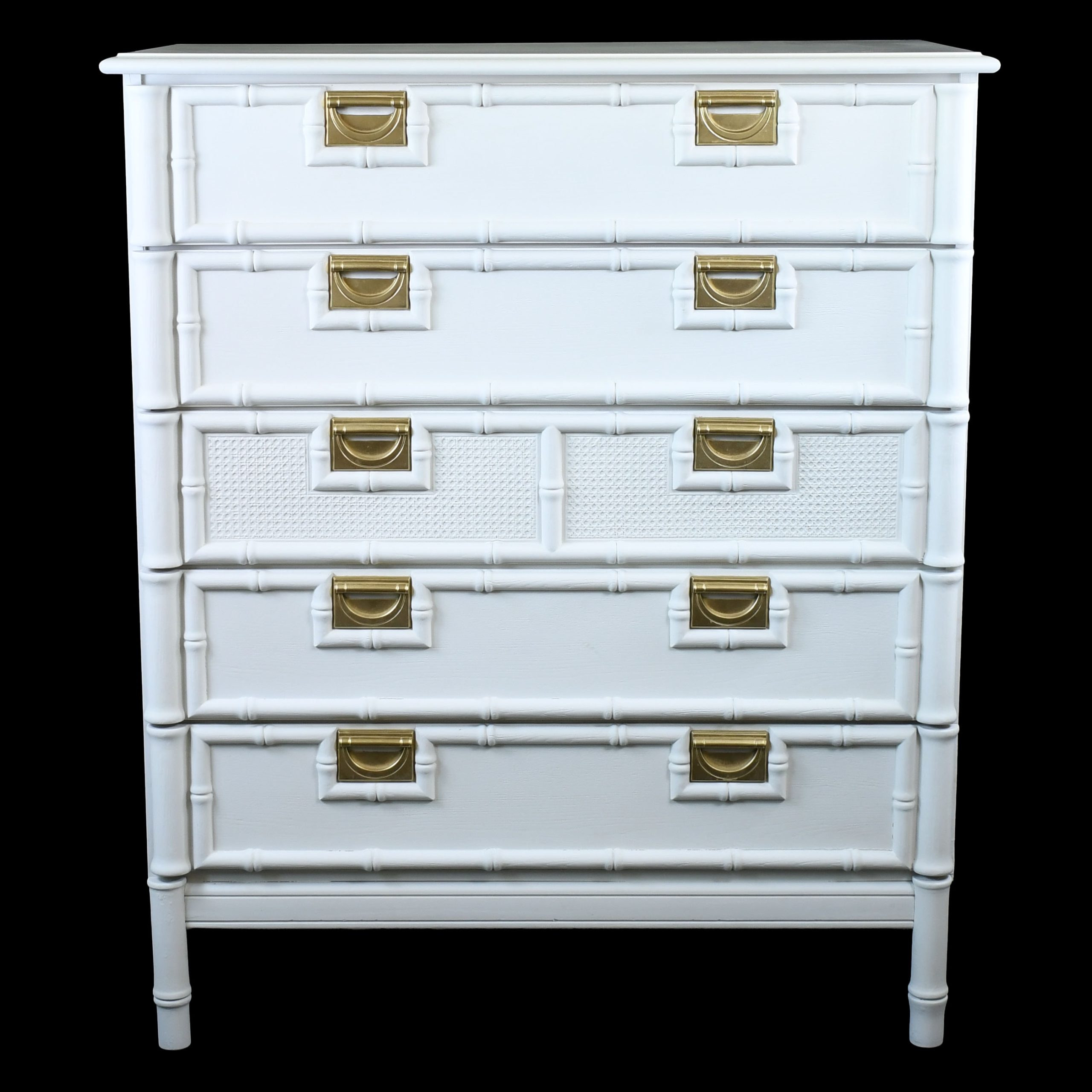 Vintage Faux Bamboo White Tall Chest in nice as found VINTAGE condition. There are minor scuffs, scrapes and wear to the as found finish. (see photos)