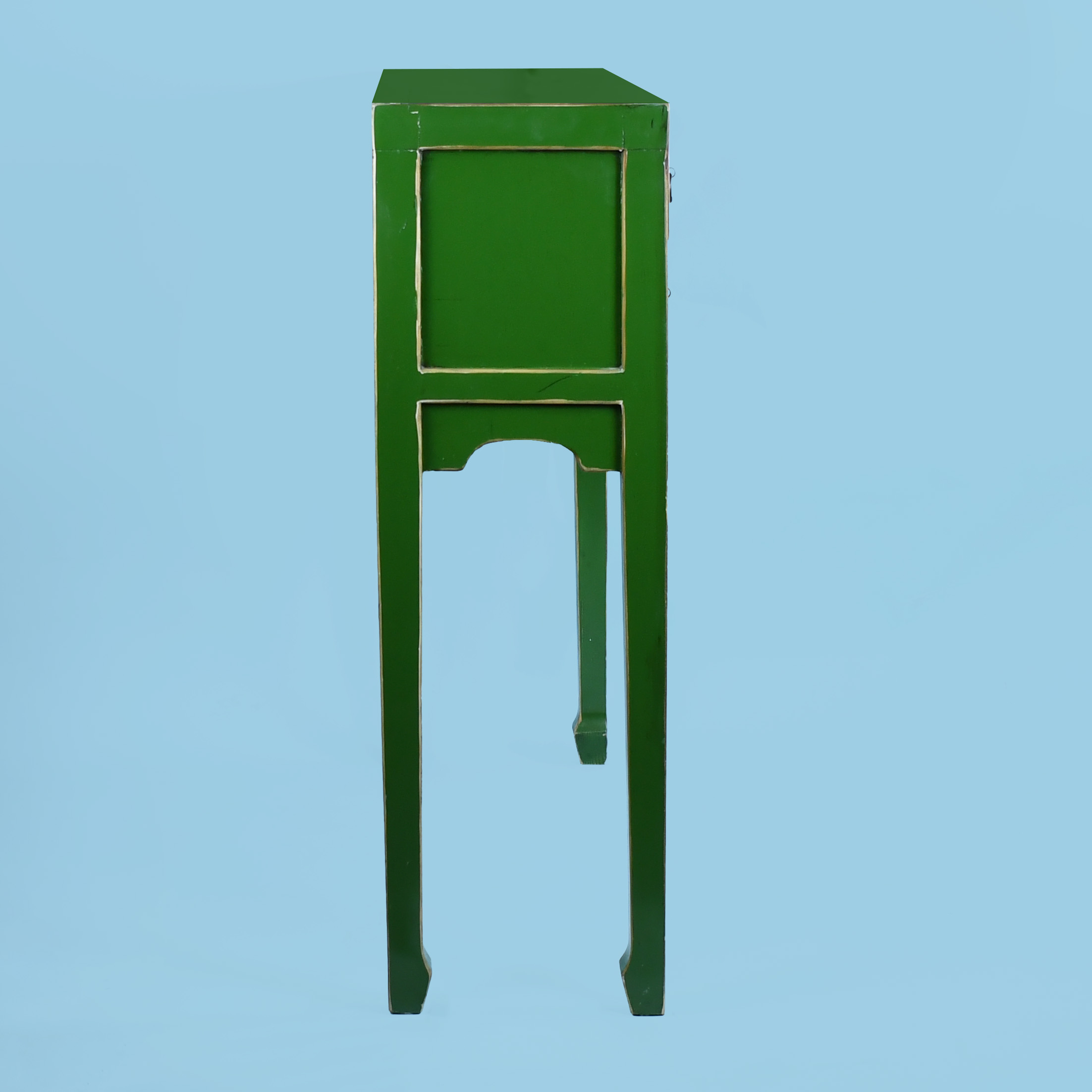Vintage Green Petite Console Table in nice as found vintage condition. There are scuffs, scrapes and wear to the original Lacquer finish. (see photos)