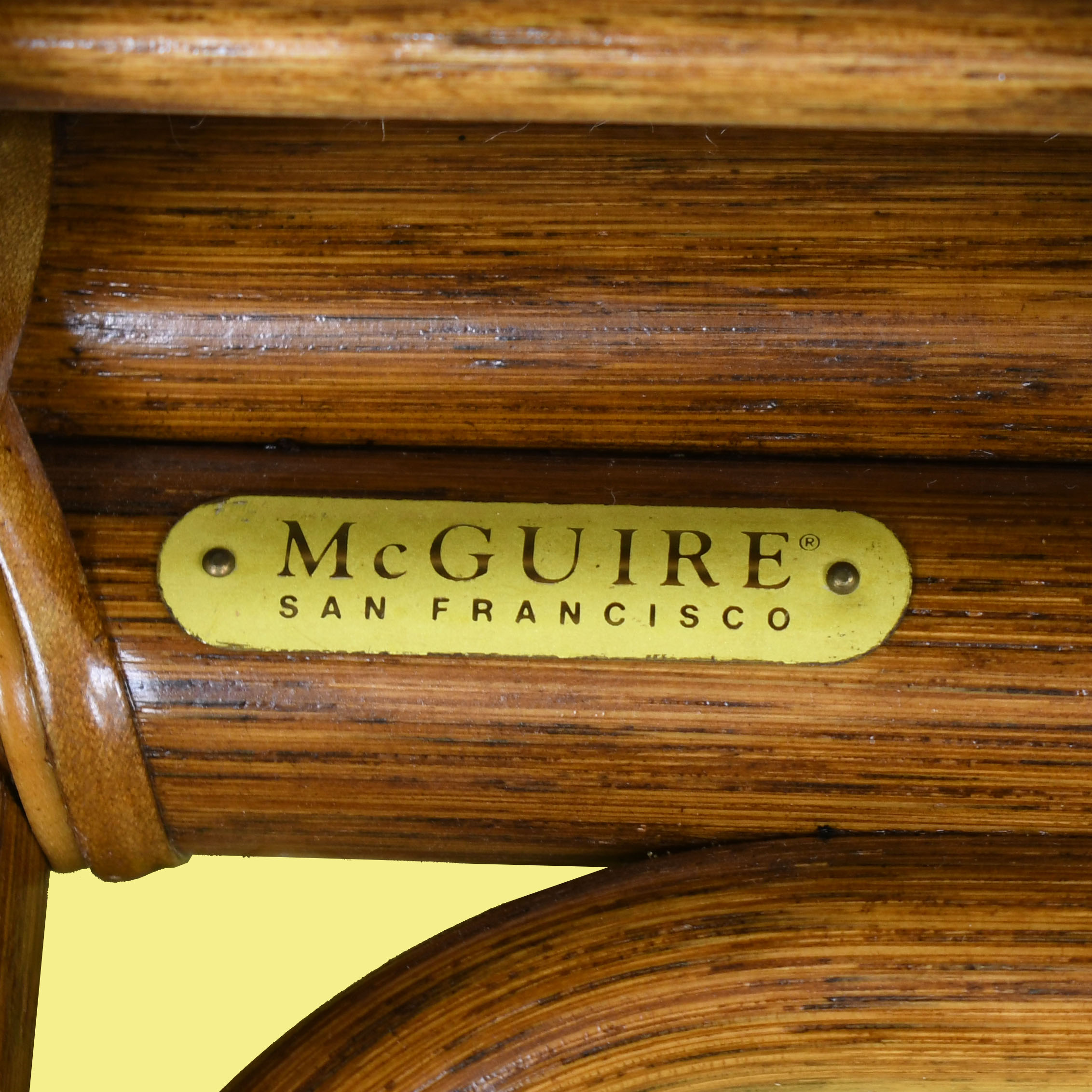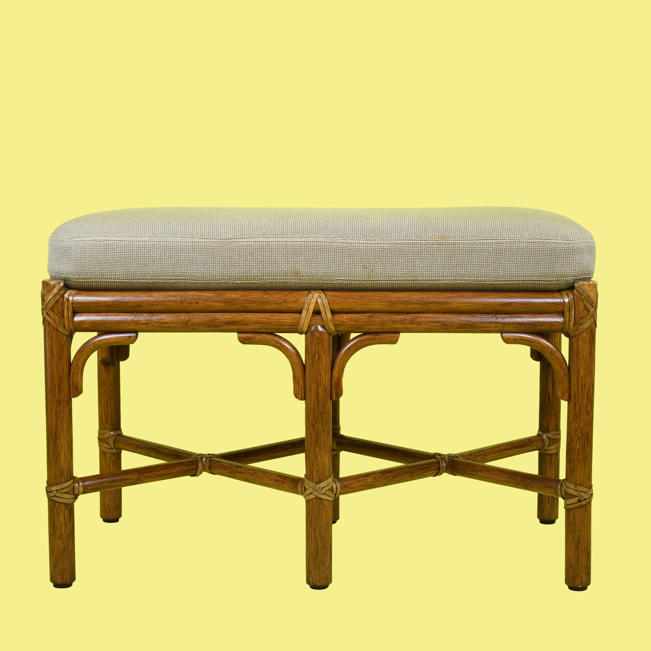 Vintage McGuire Bench in nice as found vintage condition. There are minor scuffs, scrapes and wear to the original finish. As found upholstery. (see photos)