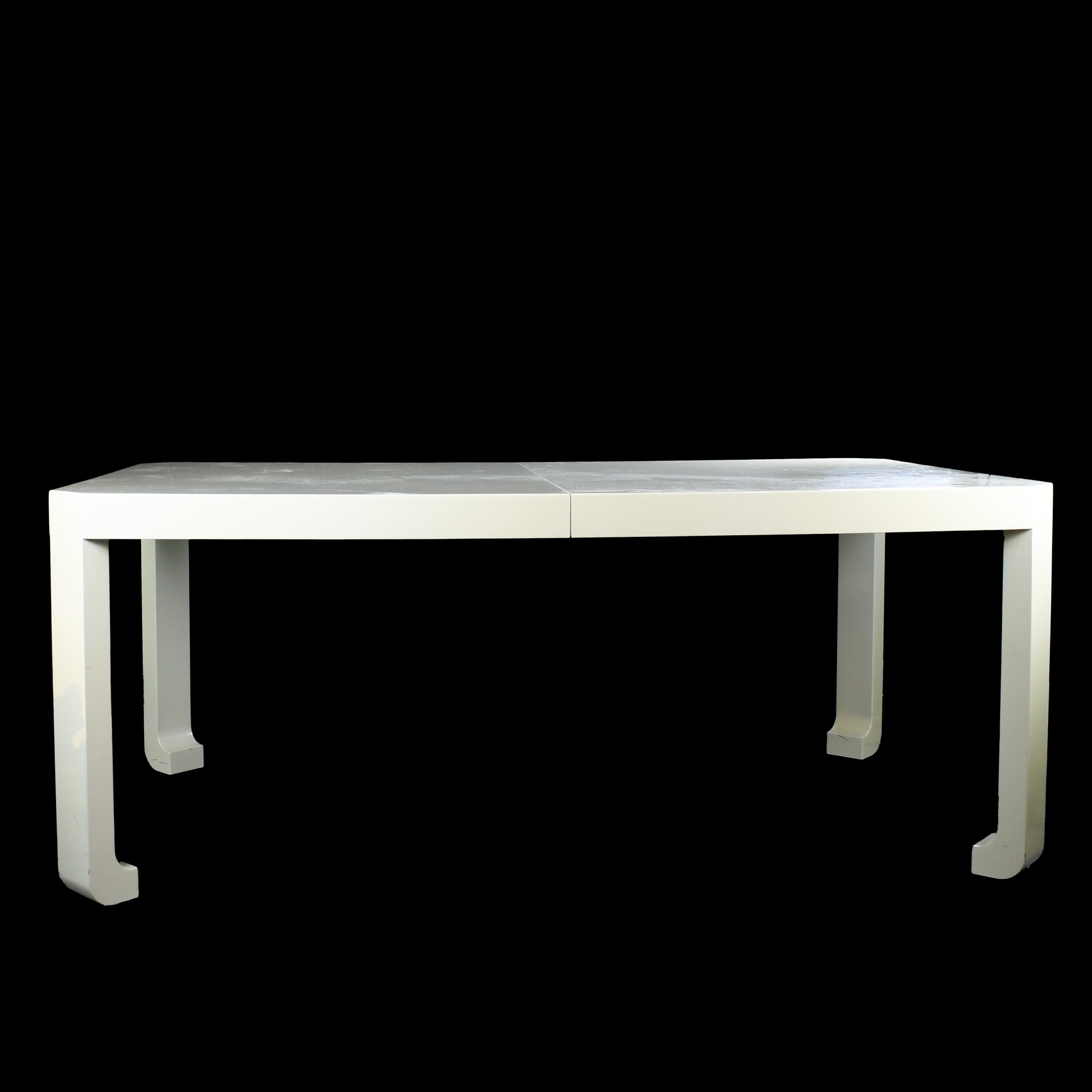 Vintage Ming-style extendable dining table in lovely as-found vintage condition. The table shows minor scuffs, light scrapes, and gentle wear consistent with age and use, all contributing to its authentic vintage charm.This table extends to accommodate additional seating and includes two matching leaves, making it both elegant and versatile for any dining space. (Please see photos for details.)