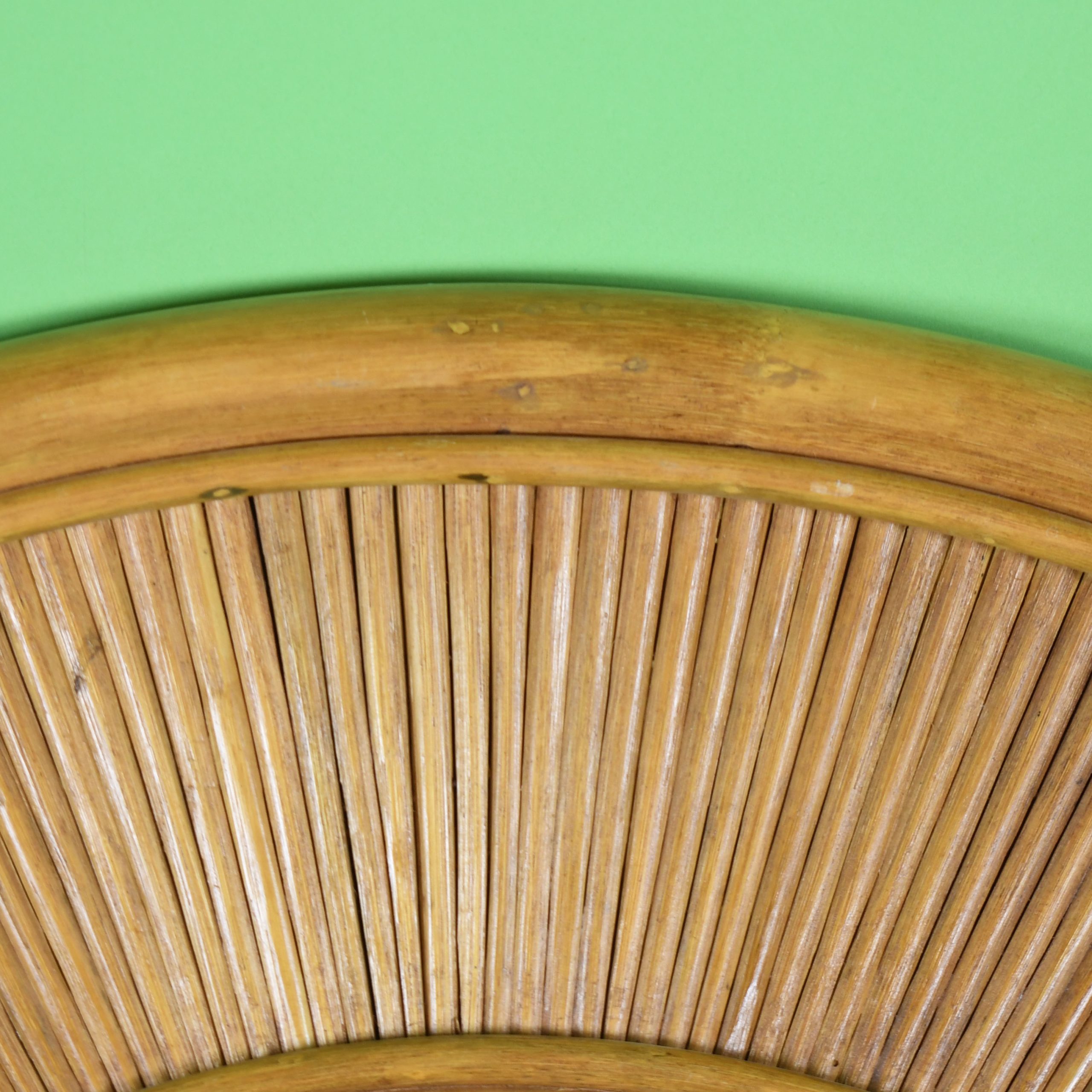 Vintage Rattan Arch Mirror in nice as found VINTAGE condition. There are minor scuffs, scrapes and wear to the as found finish. (see photos)