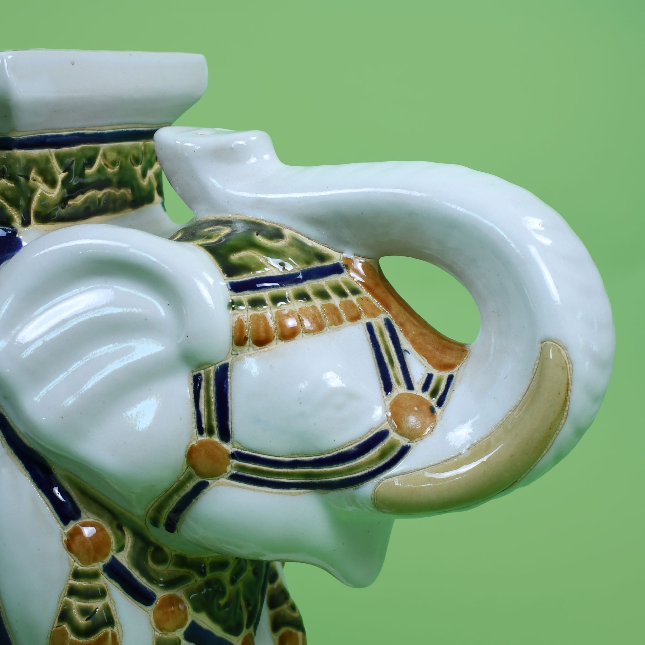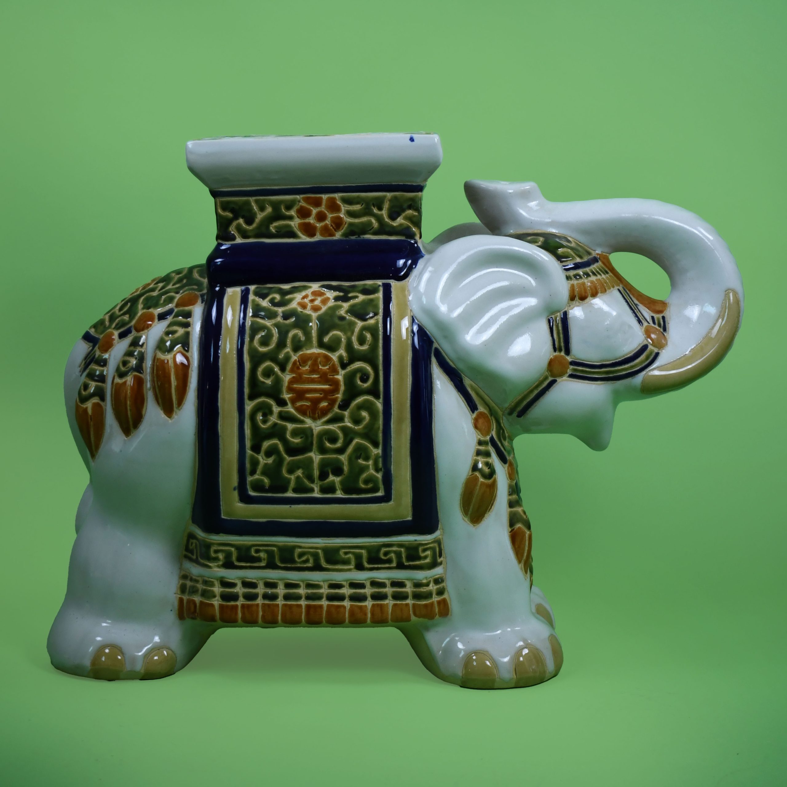 Vintage White Ceramic Elephant in nice as found VINTAGE condition. There are minor scuffs, scrapes and wear to the glazed finish. (see photos)