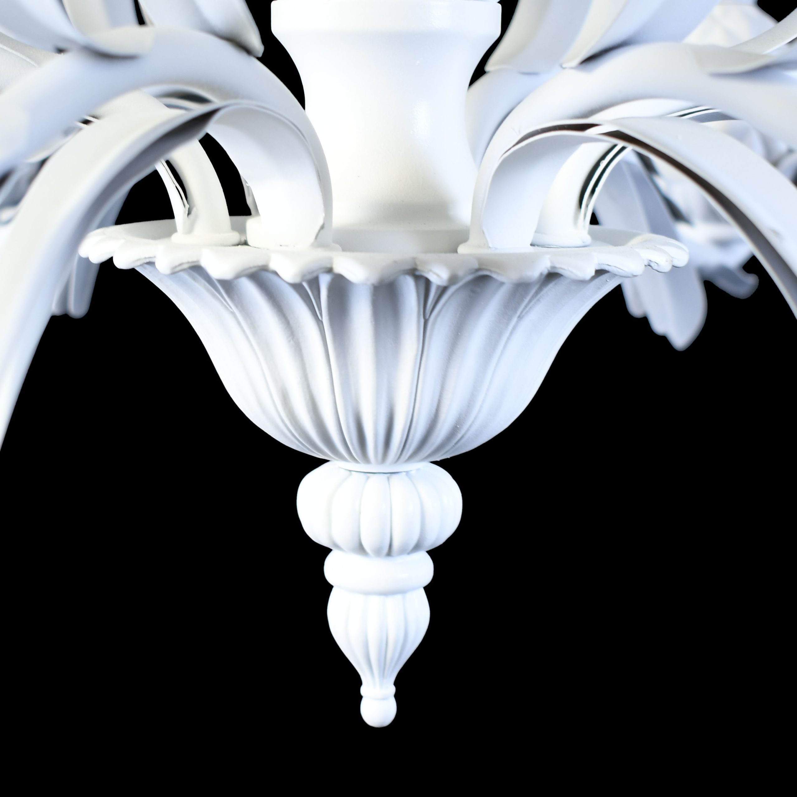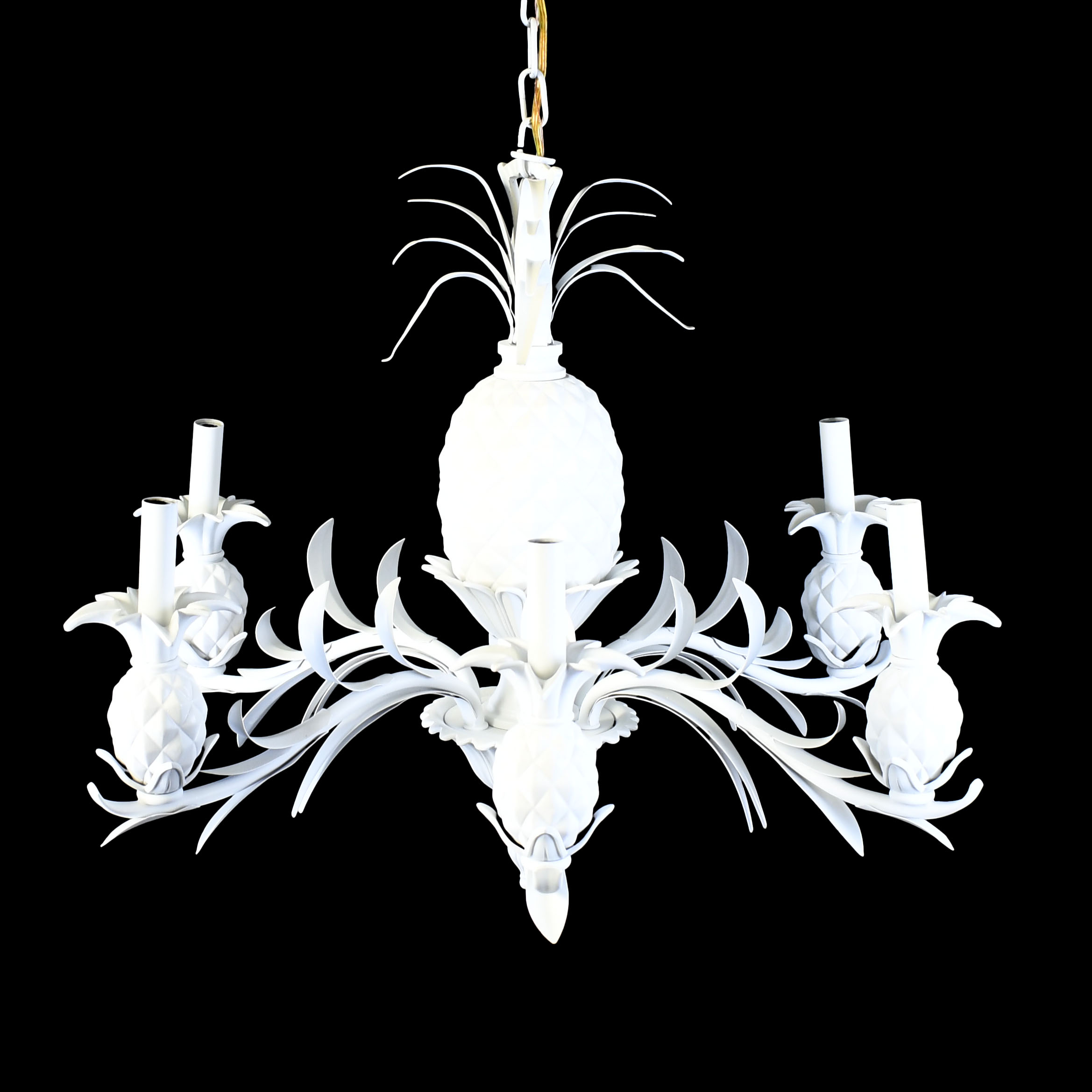 White Pineapple Chandelier in nice as found VINTAGE condition. There are minor imperfections to the Newly Lacquered finish. Original wiring. (see photos)
