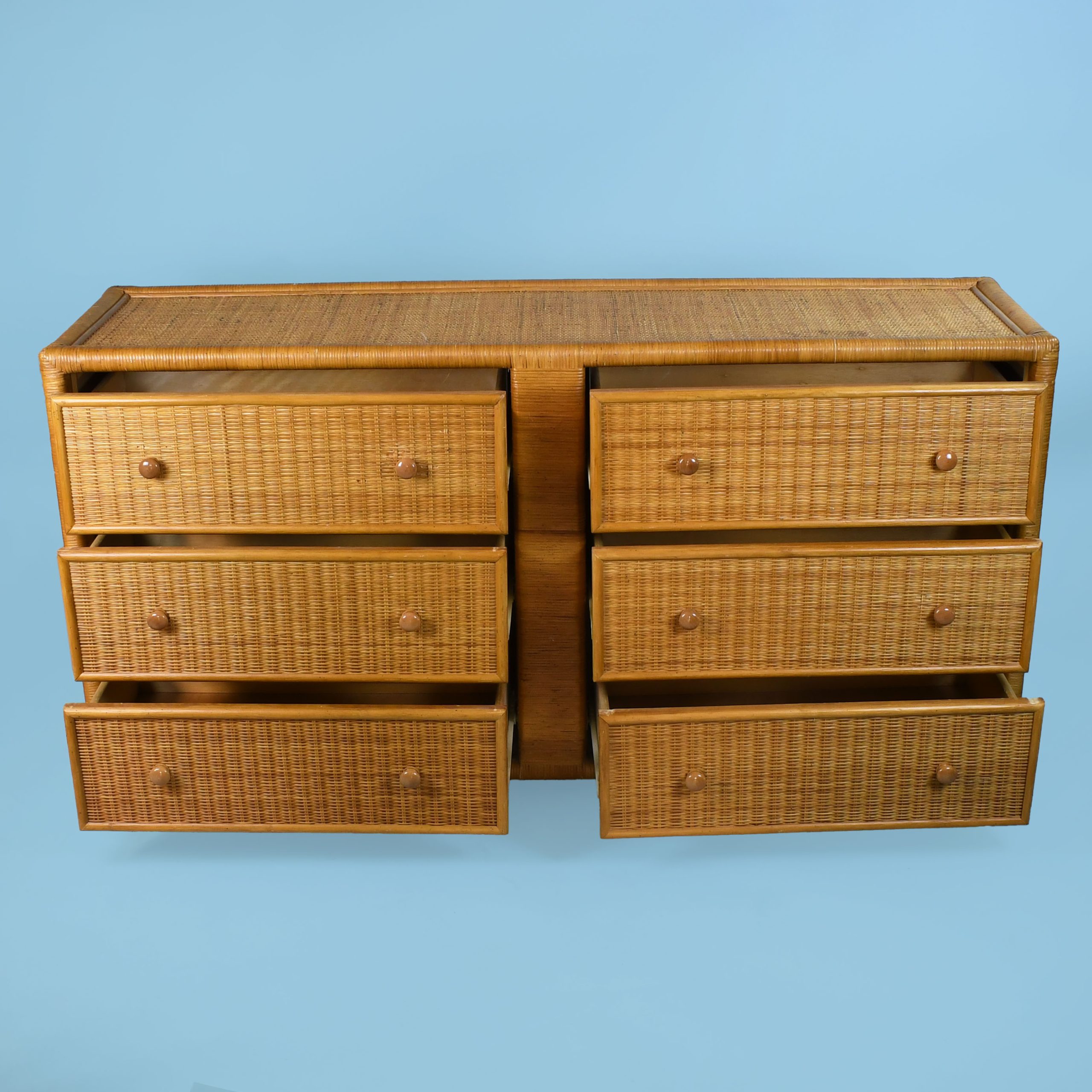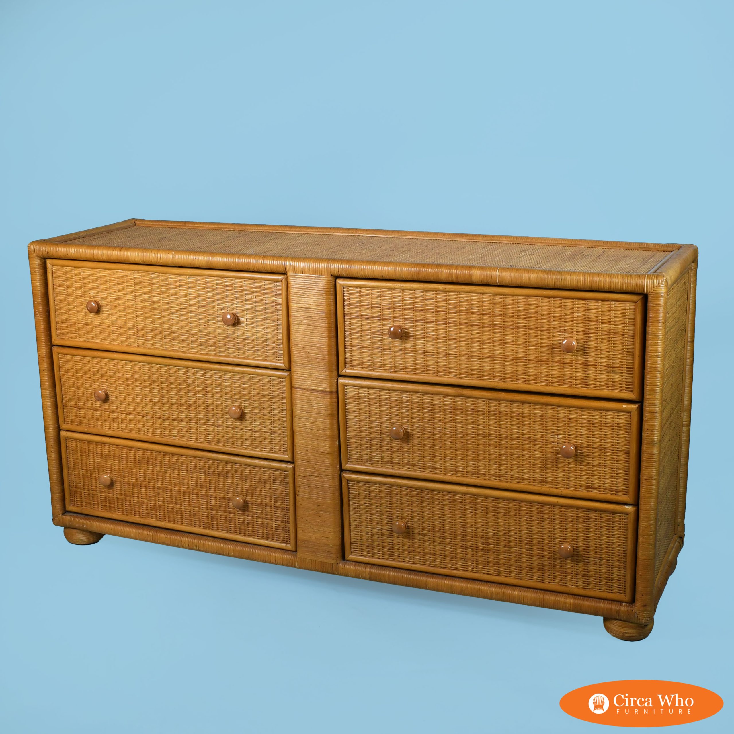 Woven Rattan and Cane Rattan Double Dresser in nice as found vintage condition. There are minor scuffs, scrapes and wear to the original finish. (see photos)