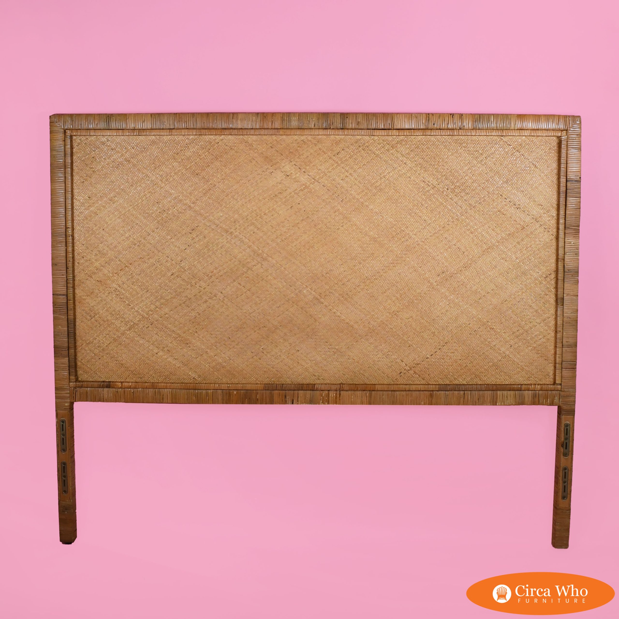 Wrapped Rattan and Woven Rattan Queen Headboard